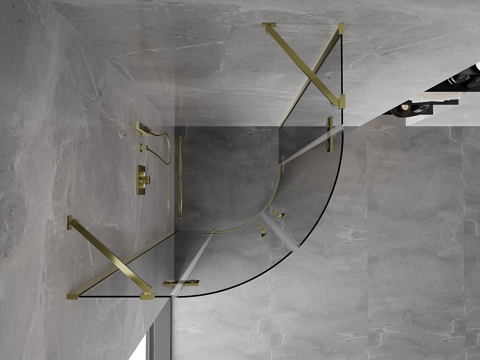 Mexen Mist cabine de douche semi-circulaire pivotante 80 x 80 cm, transparente, or - 8A33-080-080-50-00