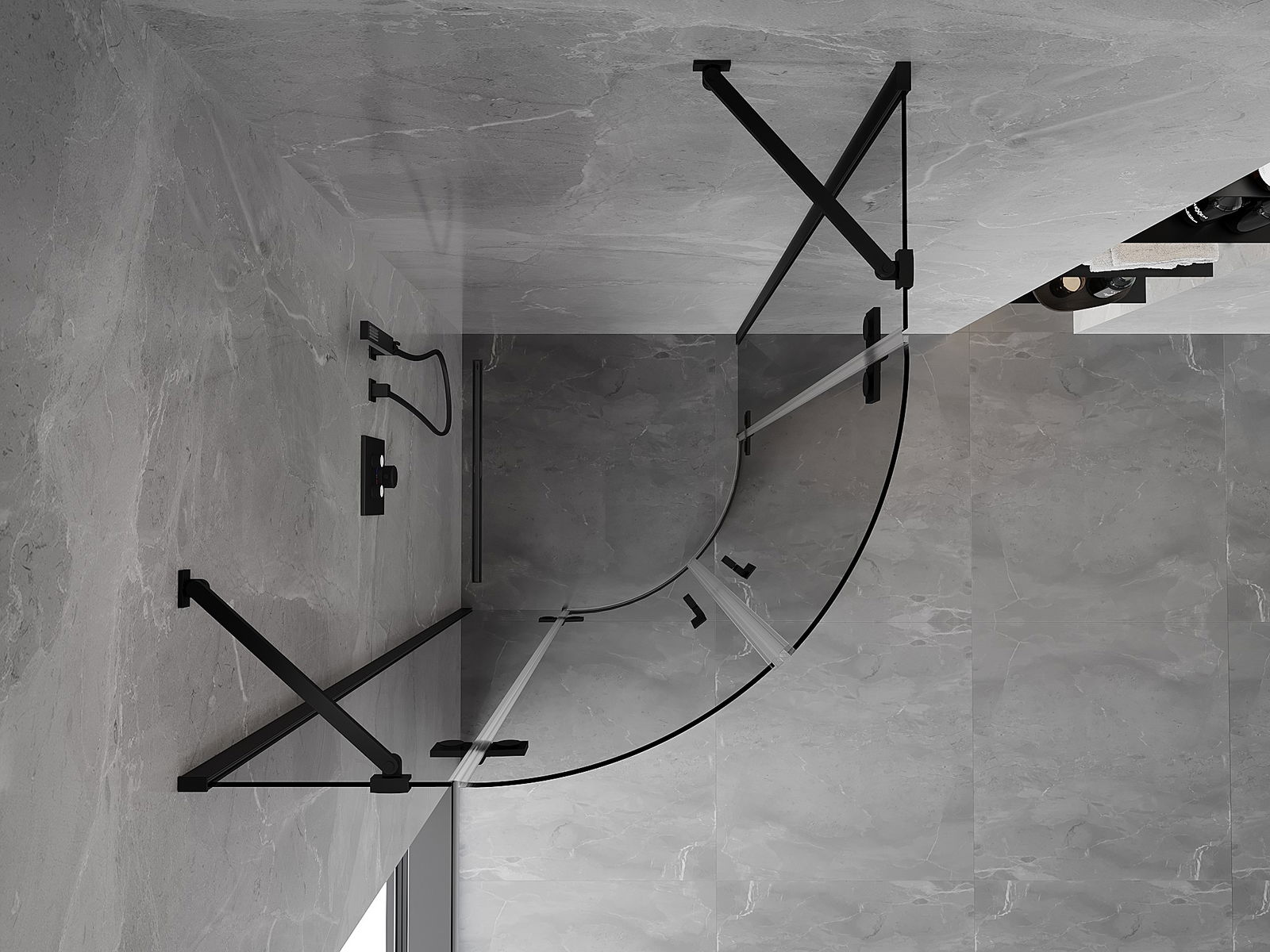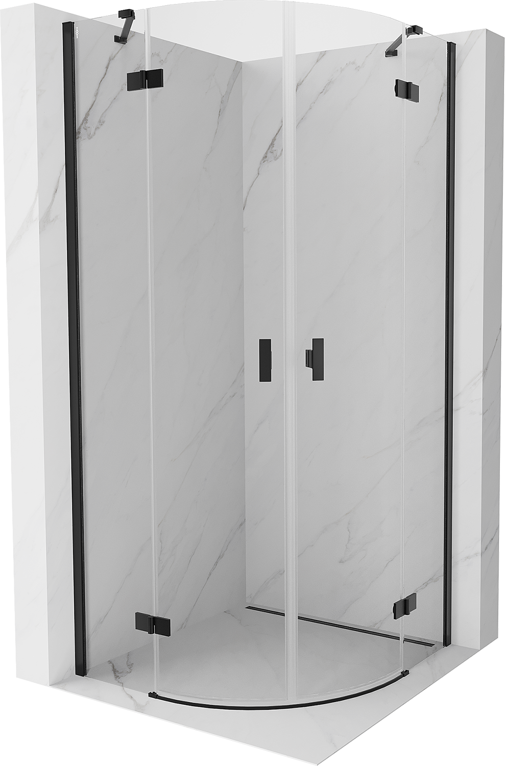 Mexen Mist cabine de douche arrondie pivotante 80 x 80 cm, transparente, noire - 8A33-080-080-70-00