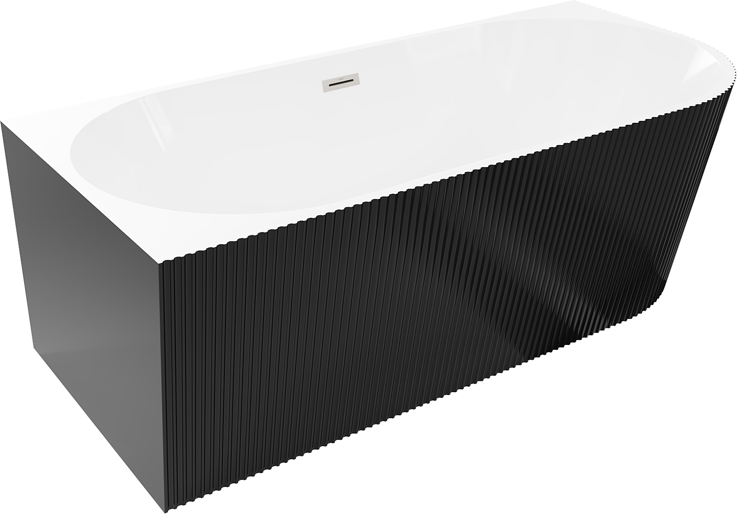 Mexen Silo baignoire autoportante d'angle gauche cannelée 150 x 75 cm, blanc/noir, trop-plein nickel brossé - 52891507575L-97