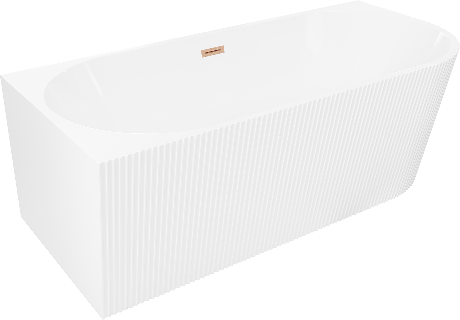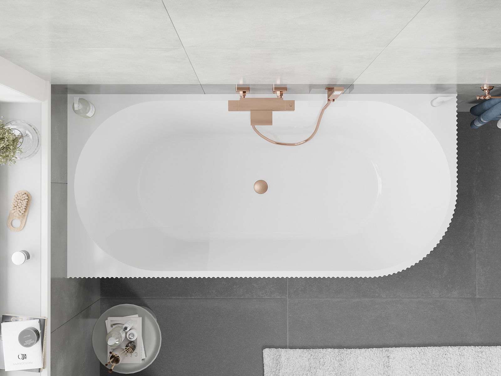 Mexen Silo baignoire autoportante d'angle gauche rainurée 170 x 80 cm, blanche, trop-plein en cuivre brossé - 52891708000L-65