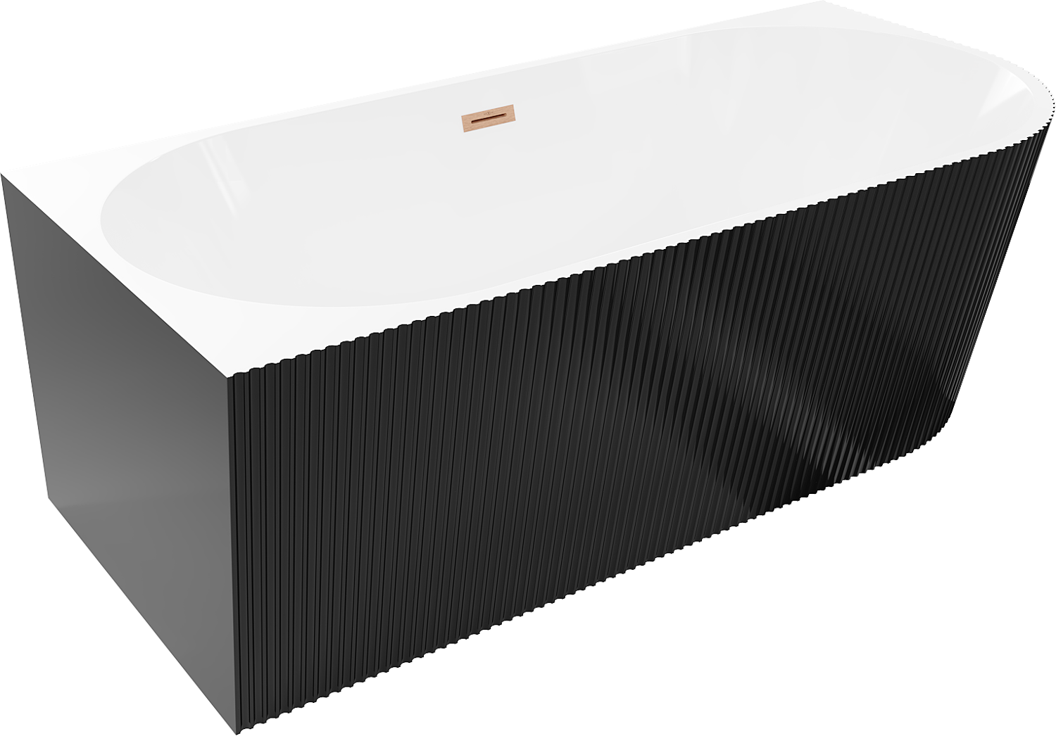 Mexen Silo baignoire autoportante d'angle gauche rainurée 170 x 80 cm, blanc/noir, trop-plein cuivre brossé - 52891708075L-65