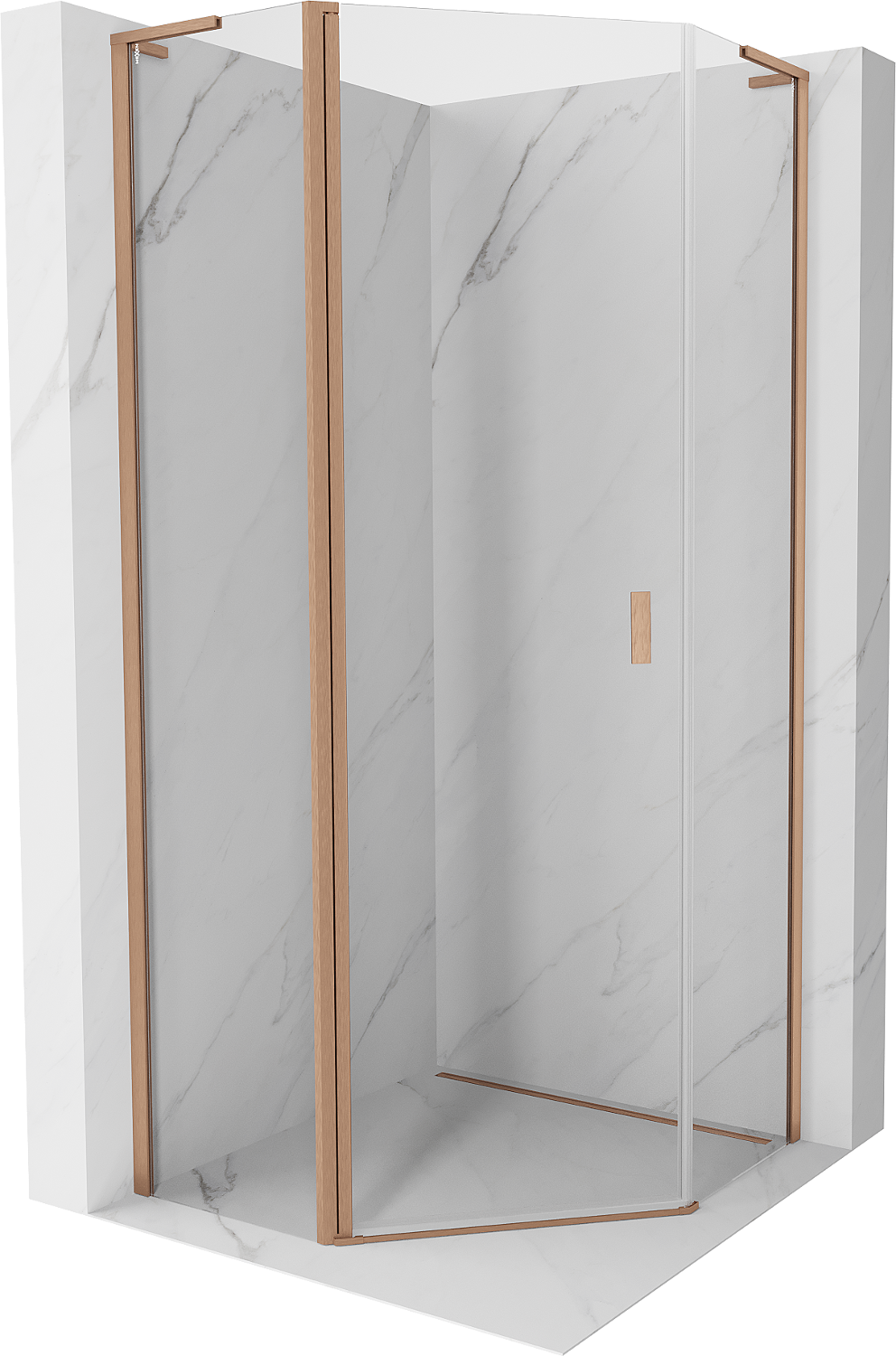 Mexen Mist L cabine de douche pentagonale à charnière 90 x 90 cm, transparent, cuivre brossé - 8A8L-090-090-65-00