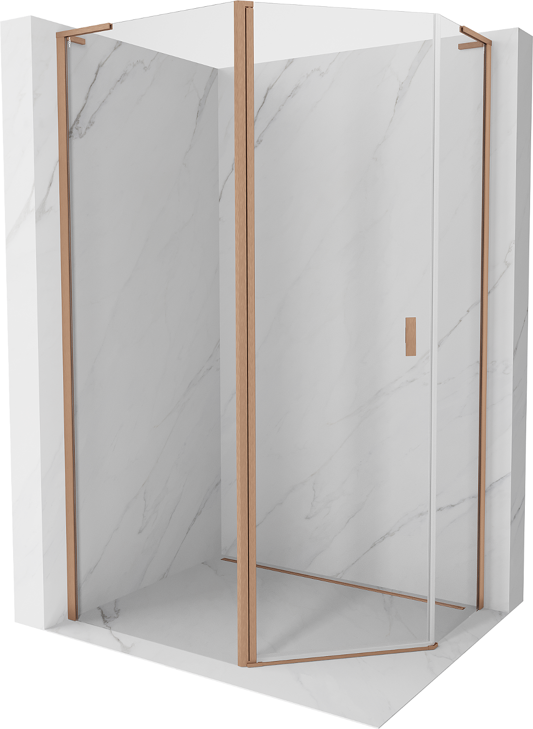 Mexen Mist L cabine de douche asymétrique pentagonale pivotante 100x90 cm, transparent, cuivre brossé - 8A8L-100-090-65-00