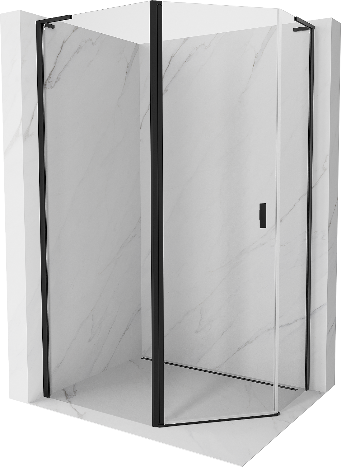 Mexen Mist L cabine de douche pentagonale asymétrique pivotante 90 x 80 cm, transparent, noir - 8A8L-090-080-70-00