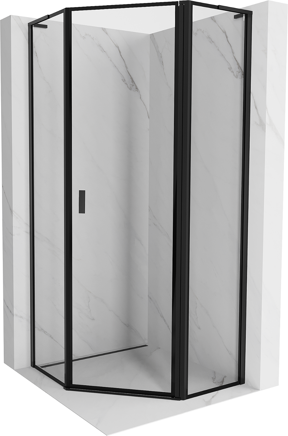 Mexen Mist L cabine de douche pentagonale pivotante droite 80 x 80 cm, cadre noir, noire - 8A8L-080-080-70-70-P