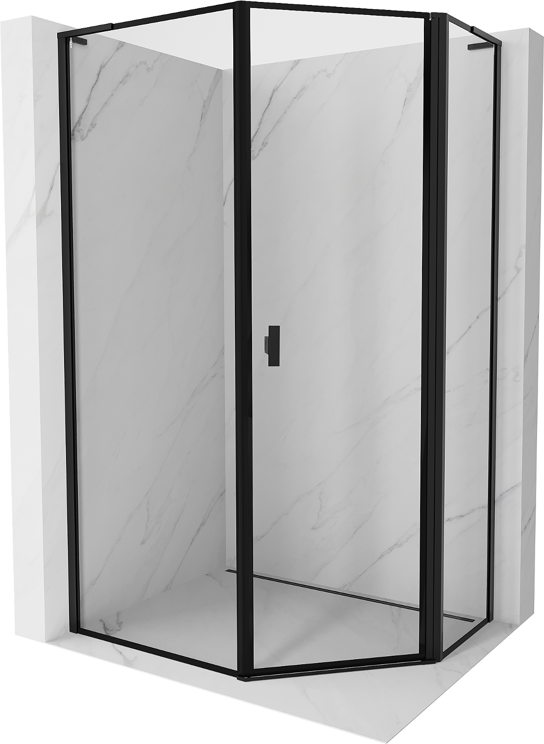 Mexen Mist L cabine de douche pentagonale asymétrique pivotante droite 80 x 100 cm, cadre noir, noir - 8A8L-080-100-70-70-P