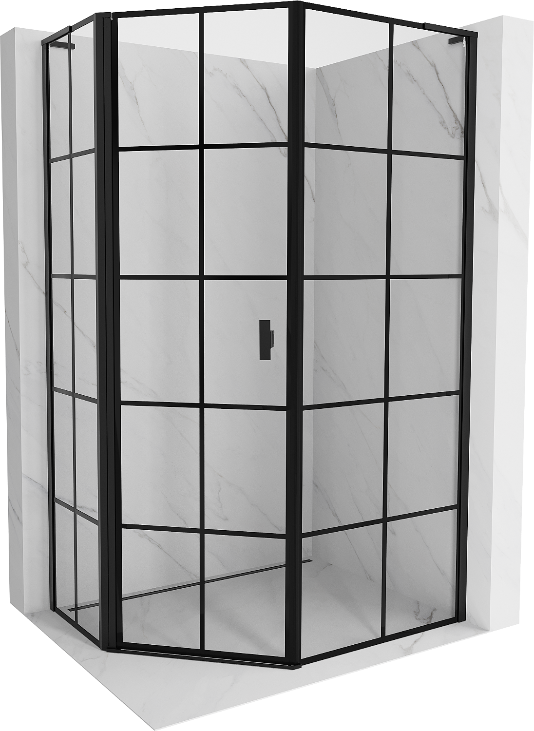 Mexen Mist L cabine de douche pentagonale asymétrique pivotante gauche 80 x 100 cm, grille noire, noire - 8A8L-080-100-70-77-L