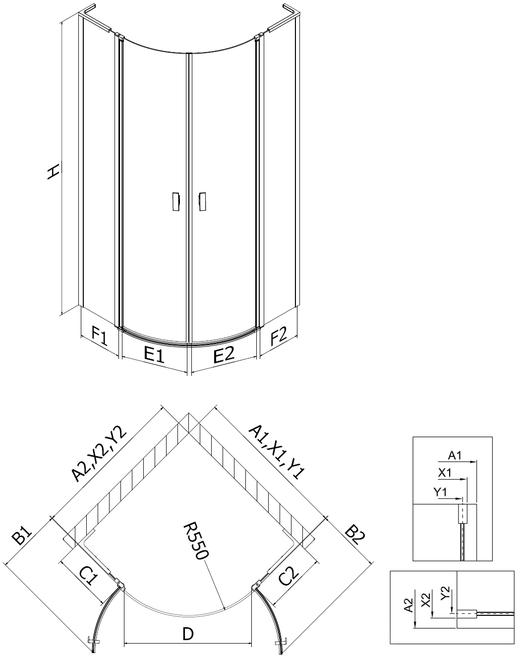 Les portes battantes permettent une liberté maximale lors de l'utilisation. Elles possèdent des charnières solides fabriquées à partir d'un matériau durable, qui ne posent pas de difficultés pour le nettoyage et permettent un accès facile à l'intérieur de la cabine.