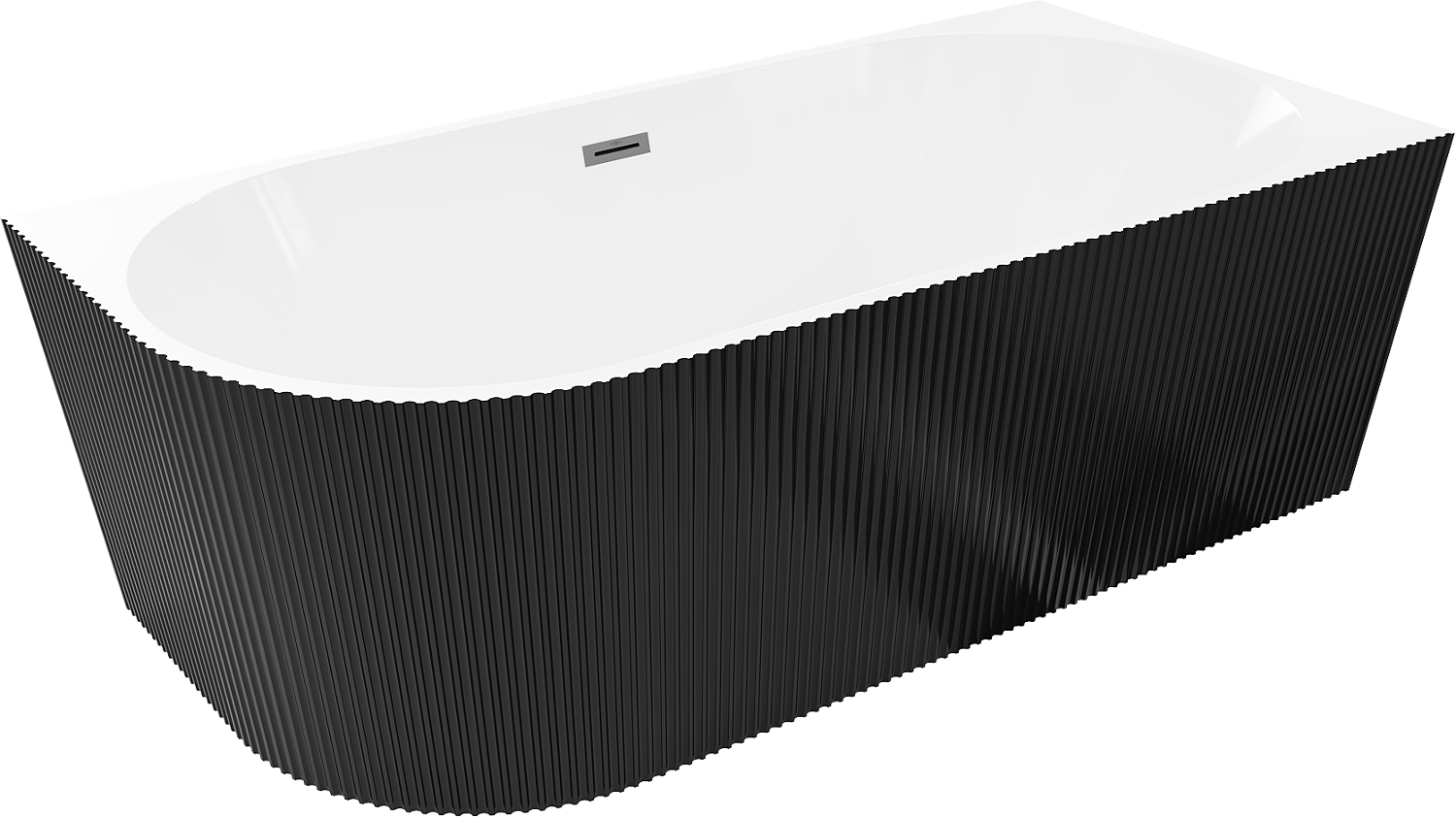 Mexen Silo baignoire autoportante d'angle droite cannelée 170 x 80 cm, blanche/noire, trop-plein gun metal - 52891708075P-95