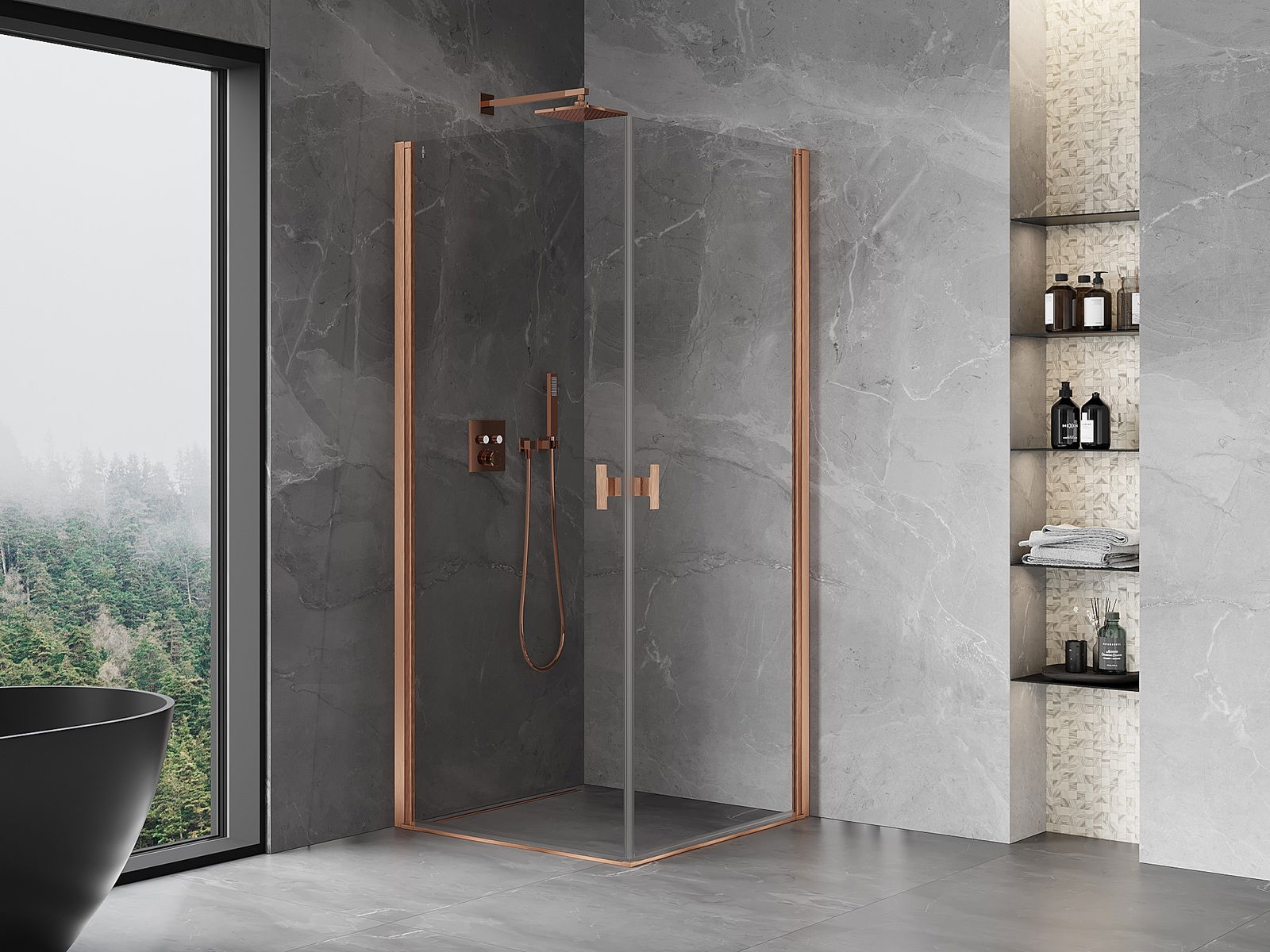 Mexen Mist-B Duo cabine de douche avec porte battante 70 x 70 cm, transparente, cuivre brossé - 8A2-070-070-65-00