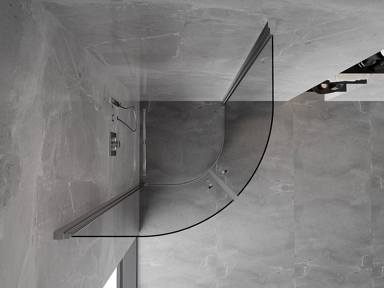 La poignée pratique et confortable est fabriquée en métal durable et résistant. Sa forme à la mode, combinée à une finition assortie à la couleur des profilés, donne à l'ensemble un aspect moderne et stylé, soulignant l'esthétique de chaque salle de bain.