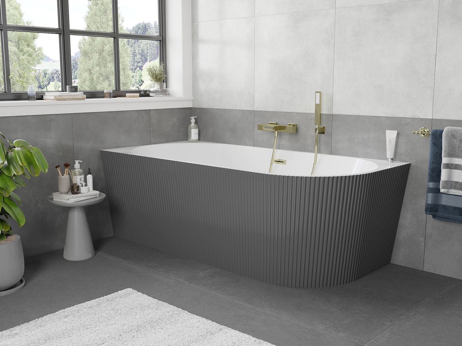 Mexen Silo baignoire autoportante d'angle gauche rainurée 170 x 80 cm, blanc/gris, trop-plein doré brossé - 52891708062L-55