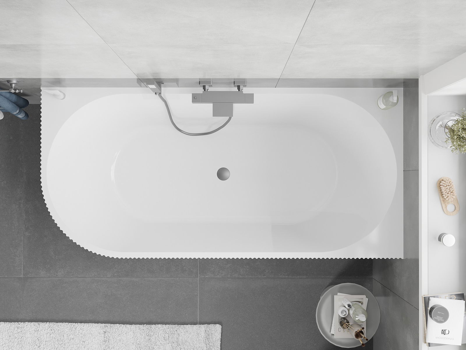 Mexen Silo baignoire autoportante d'angle à droite rainurée 150 x 75 cm, blanc/gris, trop-plein gun metal - 52891507562P-95