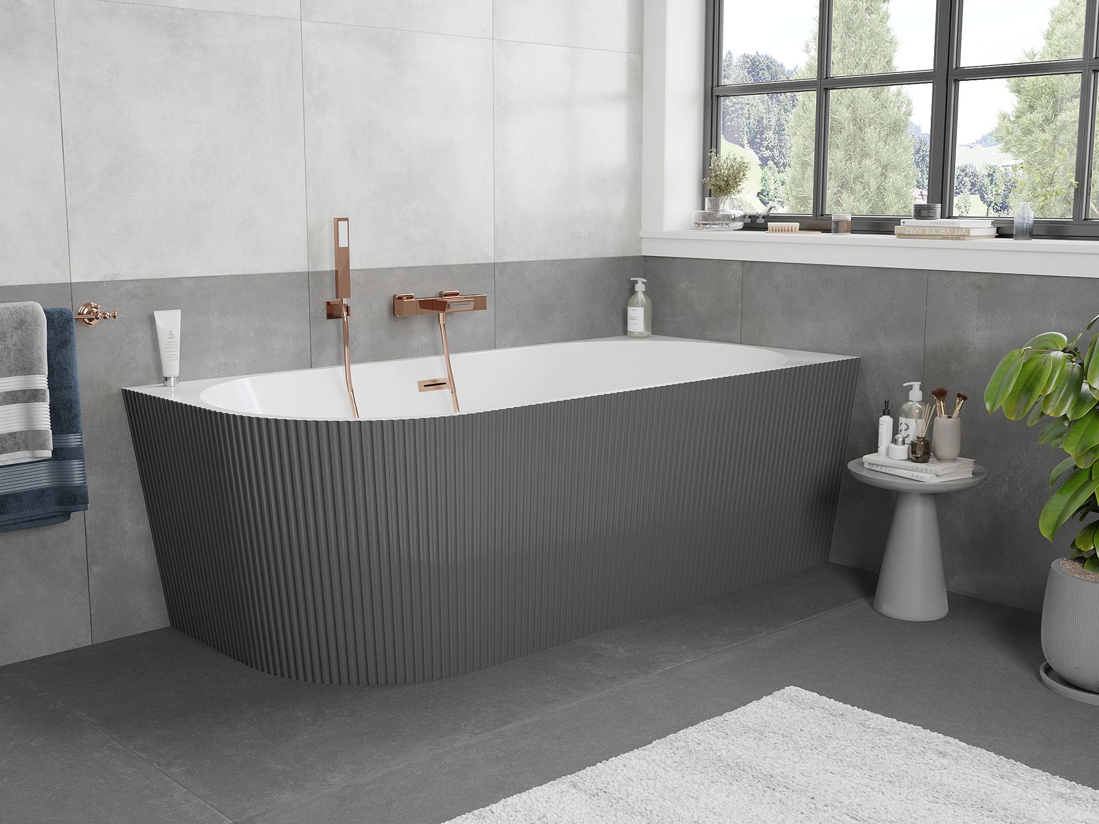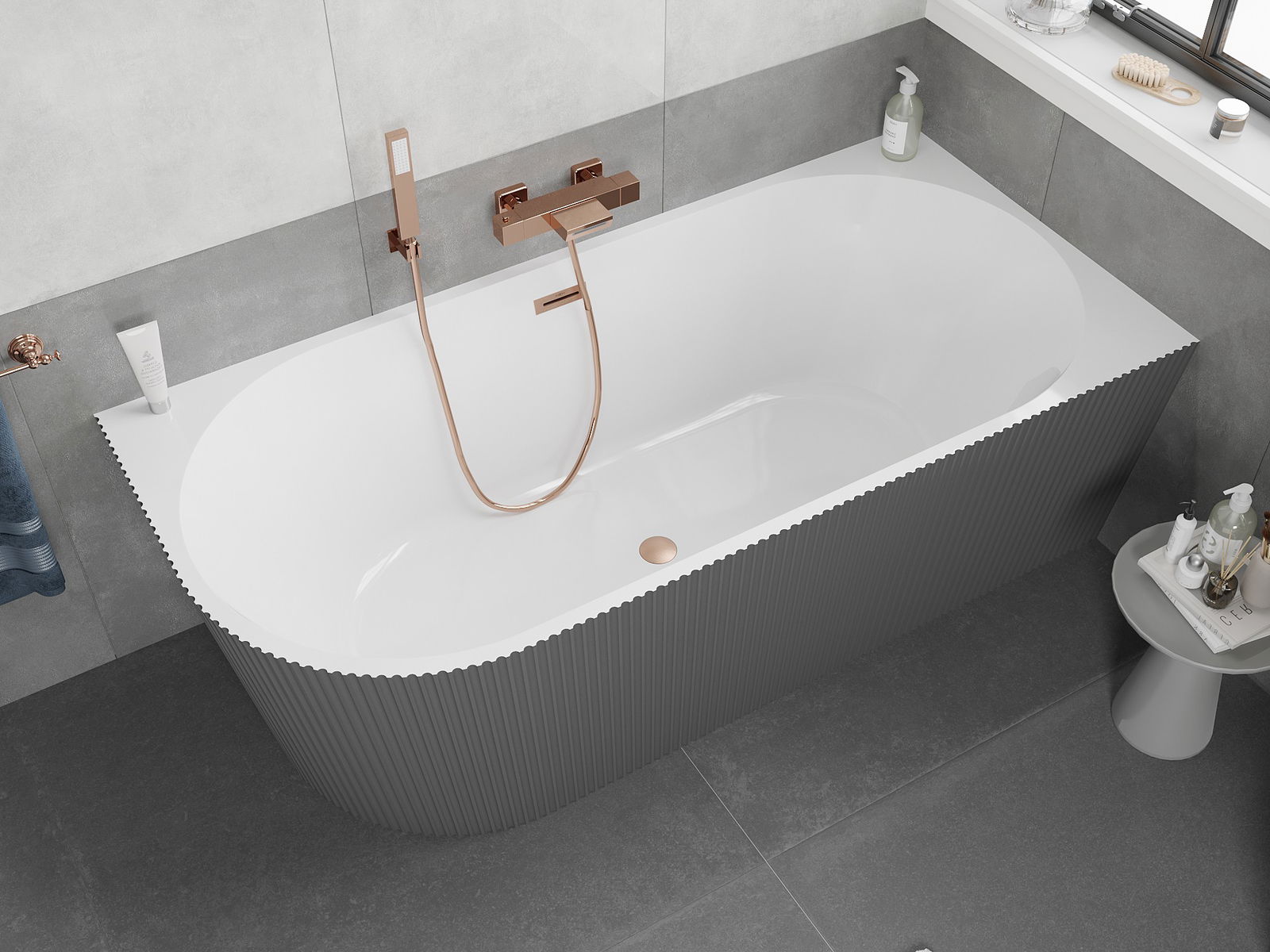 Mexen Silo baignoire autoportante d'angle droite rainurée 170 x 80 cm, blanc/gris, trop-plein cuivre brossé - 52891708062P-65