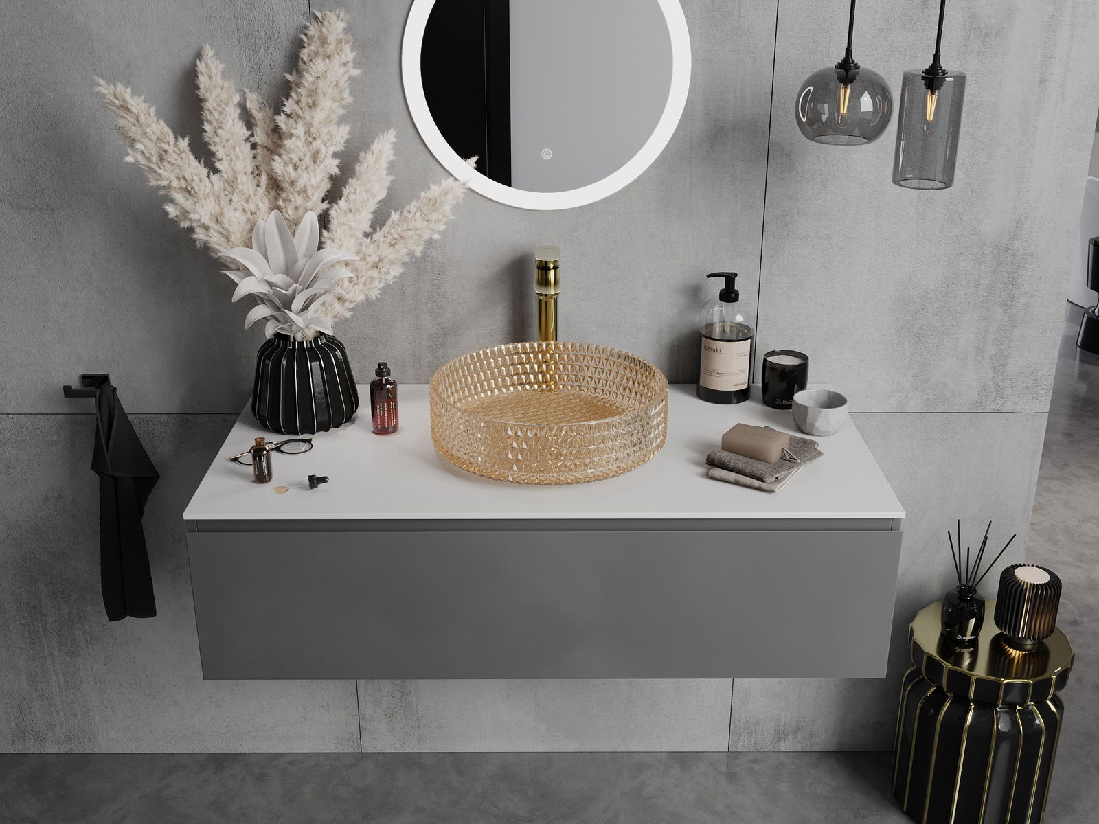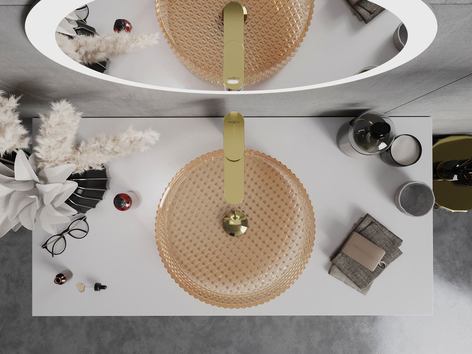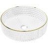 Le lavabo sur plan Mexen Aura 39 x 39 cm allie élégance et fonctionnalité. Fabriqué en verre, de couleur transparente et dorée, il s'intègre parfaitement dans les intérieurs modernes. Sa forme ronde et sa hauteur de 11,5 cm offrent un confort d'utilisation, tandis que l'absence d'orifices pour la robinetterie et le trop-plein permet une liberté dans le choix de l'équipement. Idéal pour les salles de bains élégantes, ce lavabo est non seulement esthétique, mais aussi facile à entretenir, ce qui en fait un choix pratique pour chaque maison.