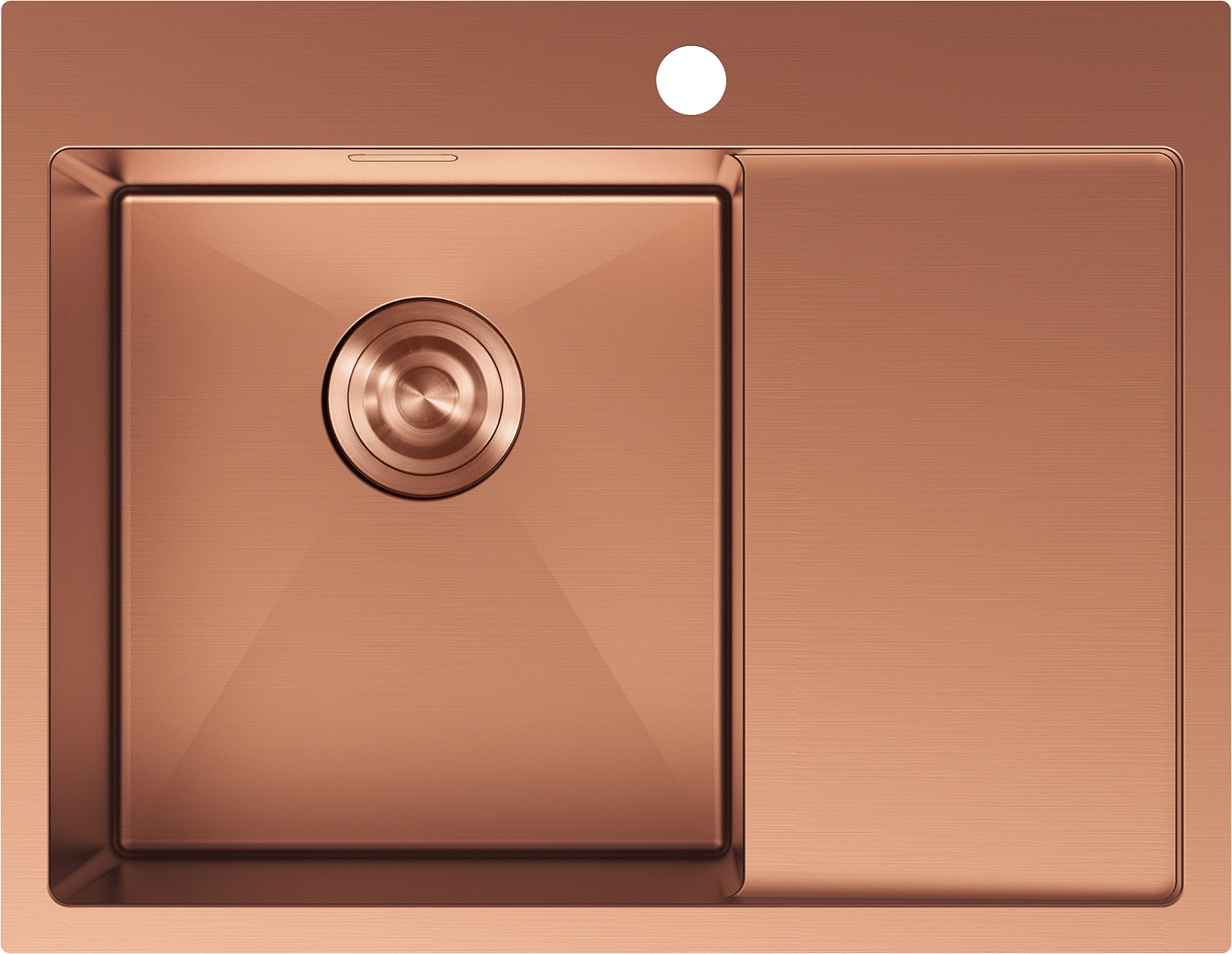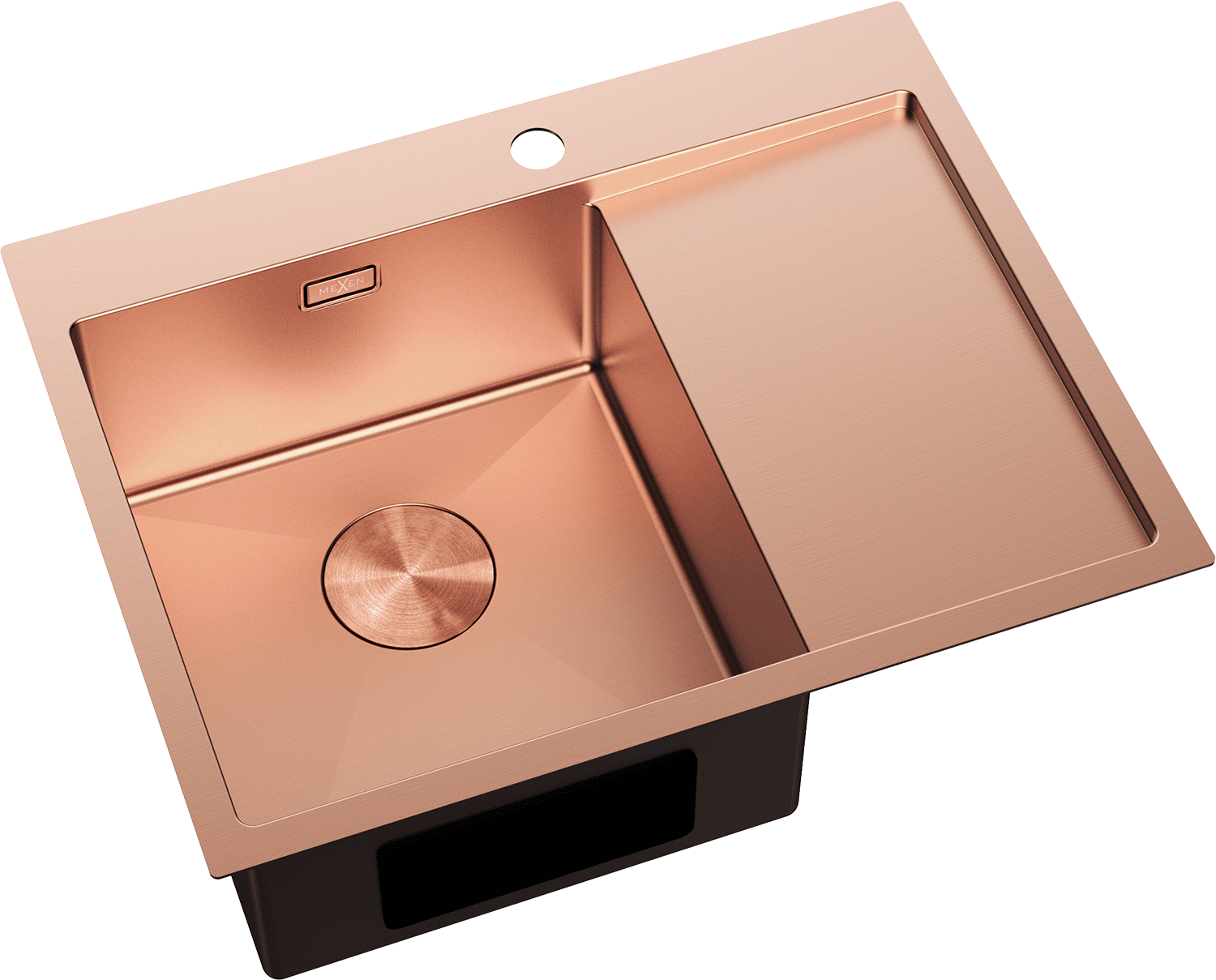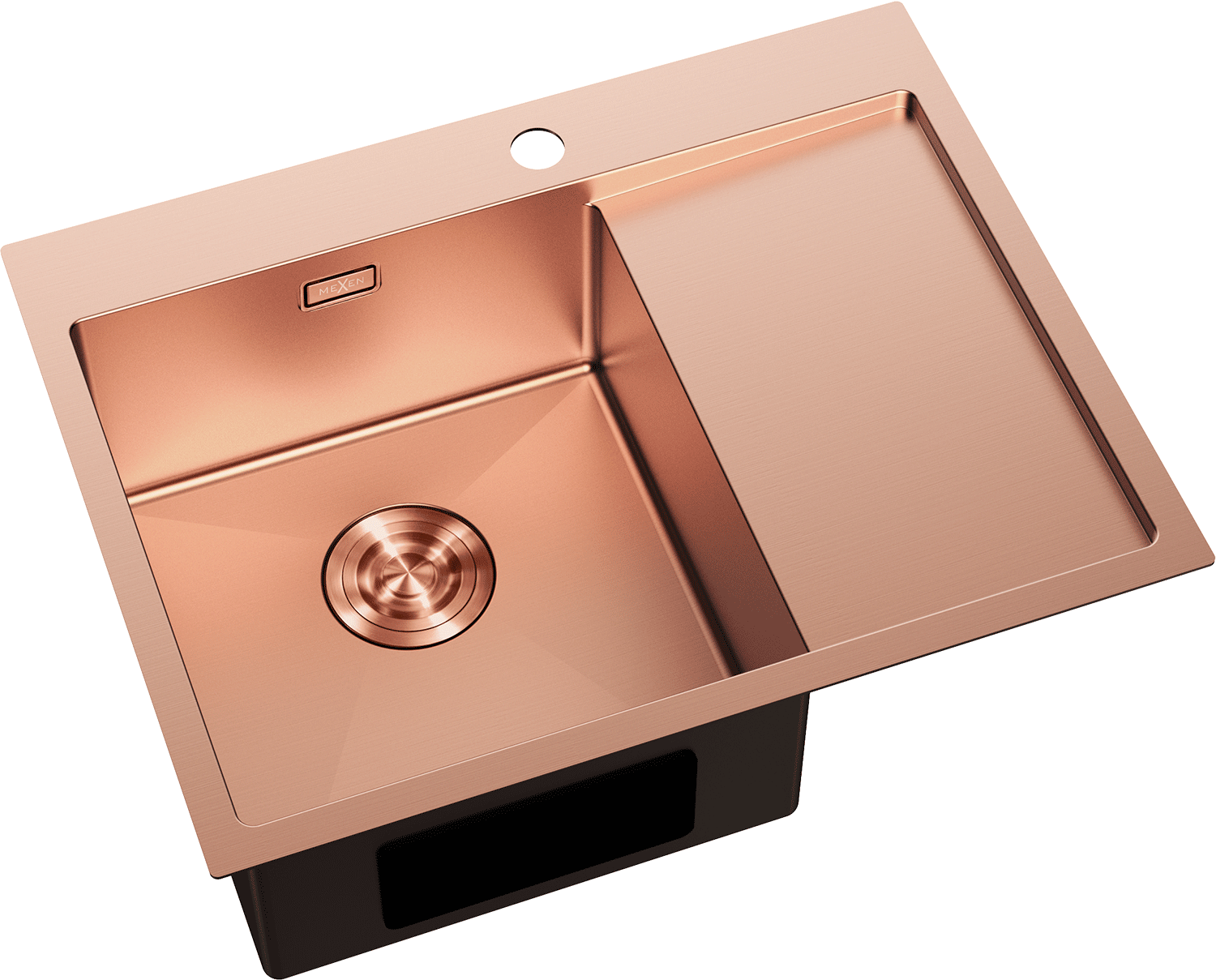 Mexen Exar évier en acier inoxydable 1 bac avec égouttoir à gauche 620 x 480 mm, cuivre - 6431621005L-65