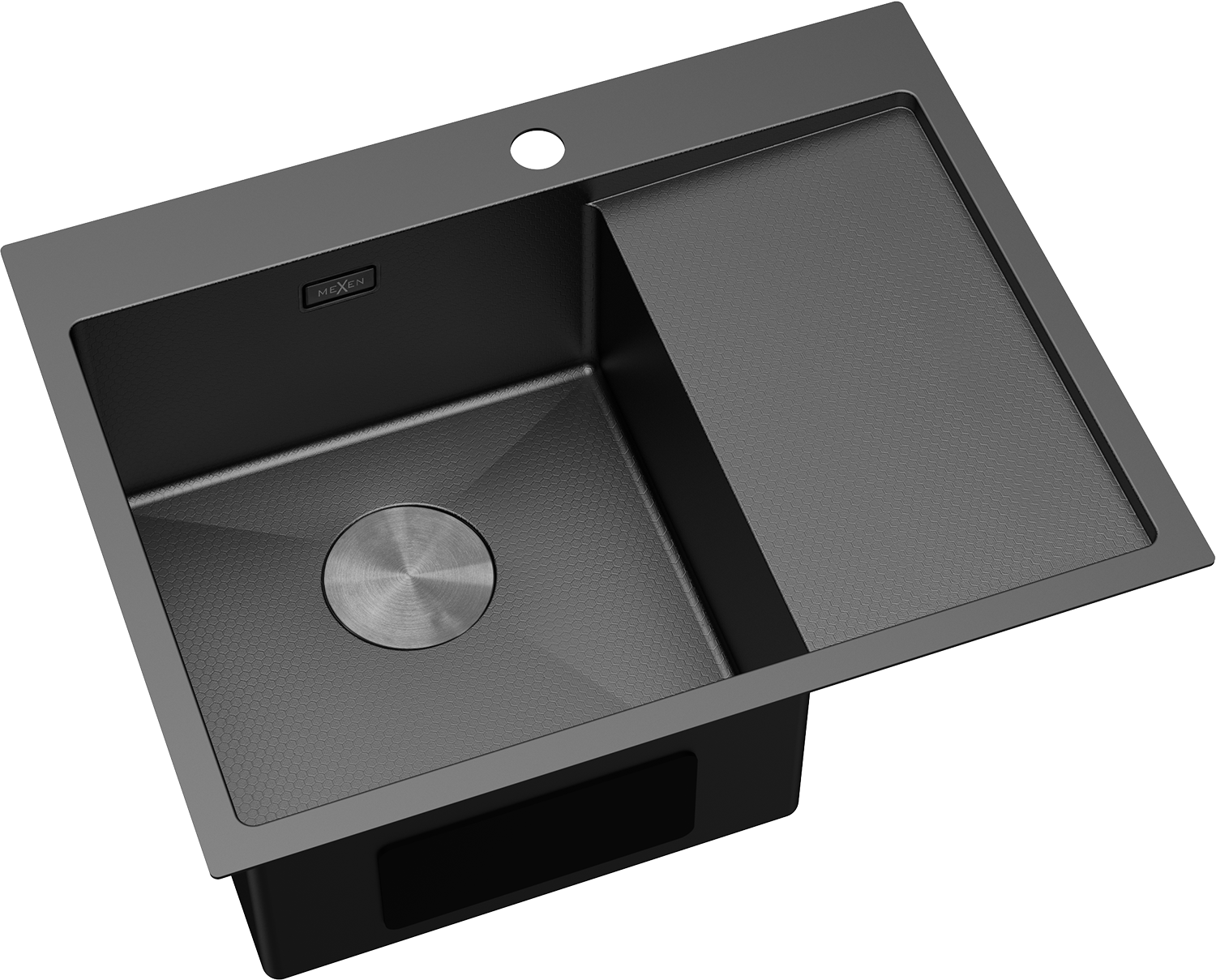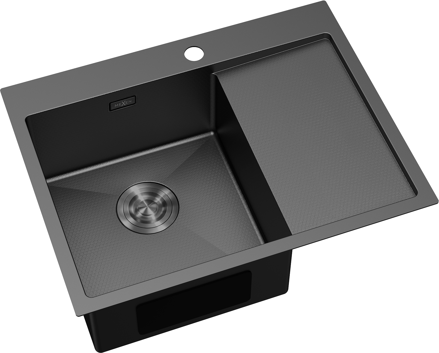 Mexen Exar évier en acier inoxydable 1 bac avec égouttoir à gauche 620 x 480 mm, noir HC - 6431621005L-70HC