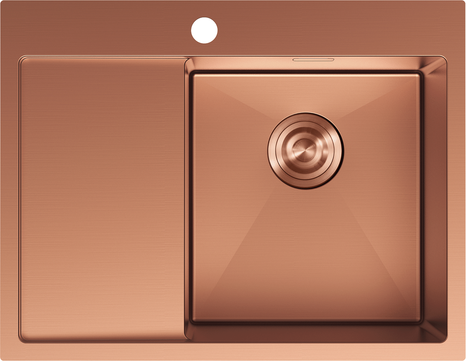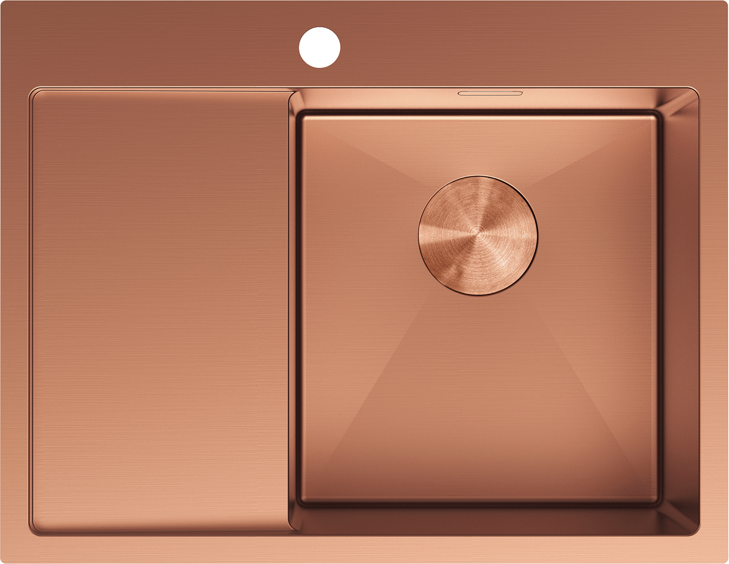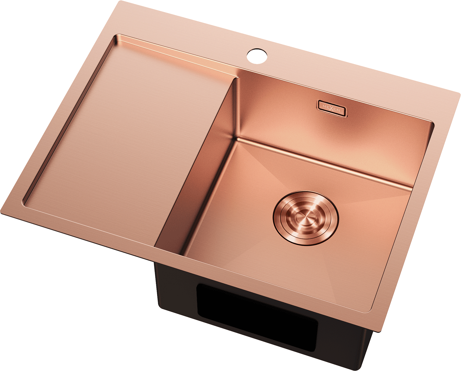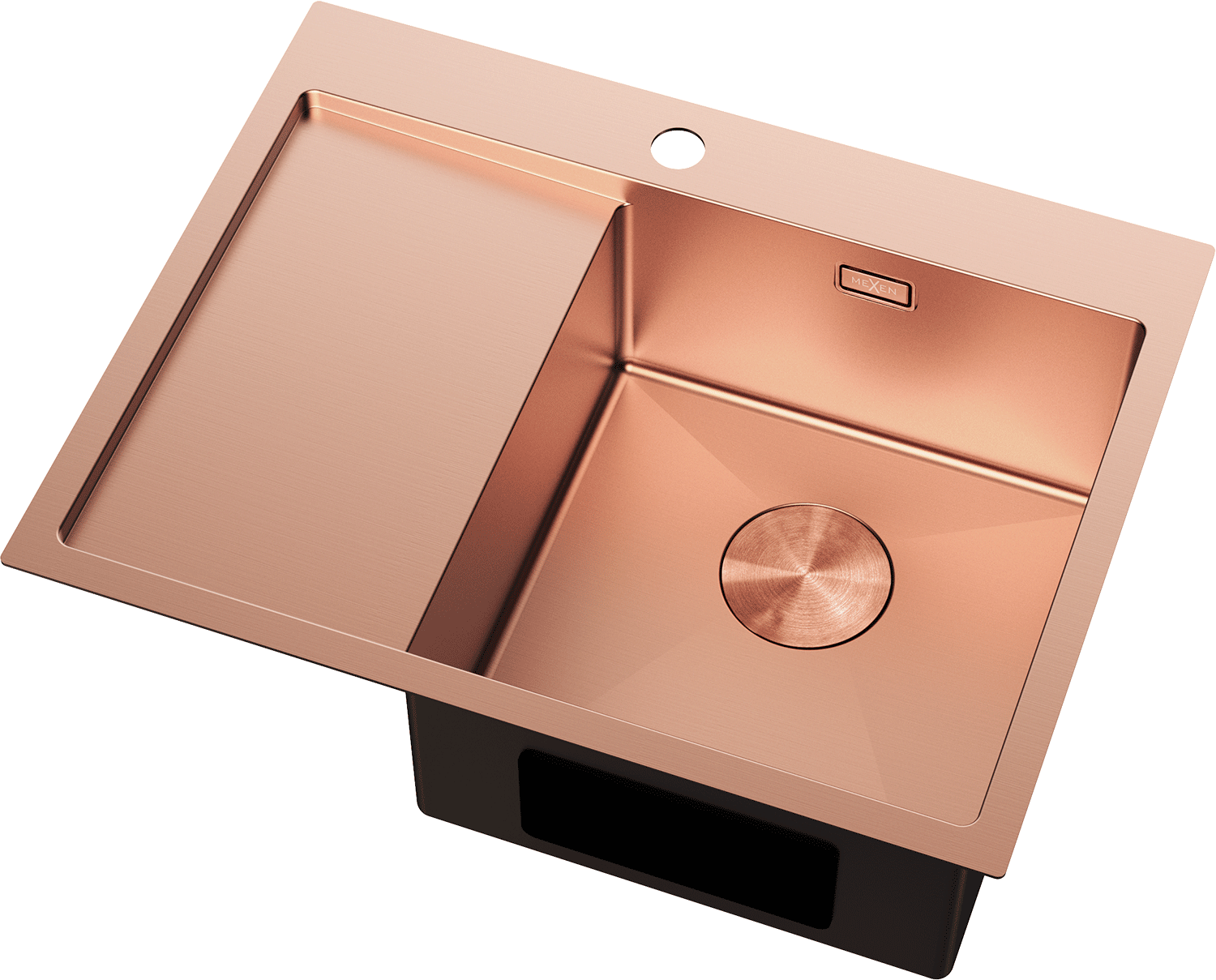 Mexen Exar évier en acier inoxydable 1 bac avec égouttoir droit 620 x 480 mm, cuivre - 6432621005P-65