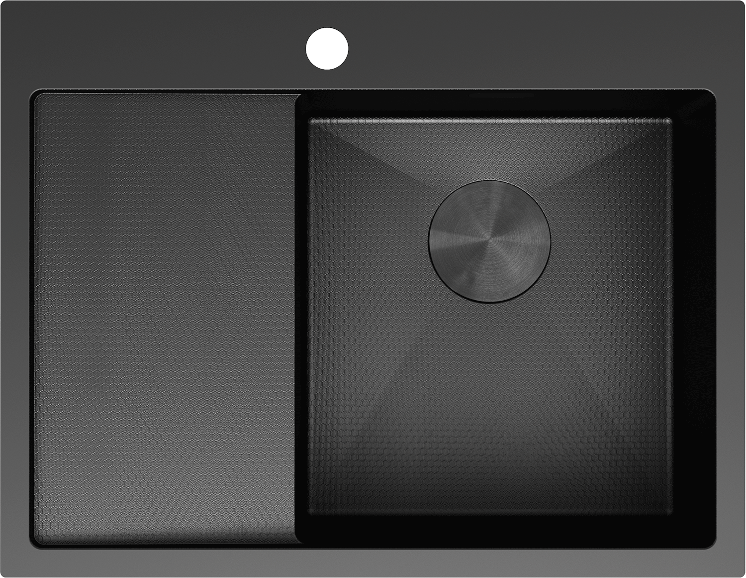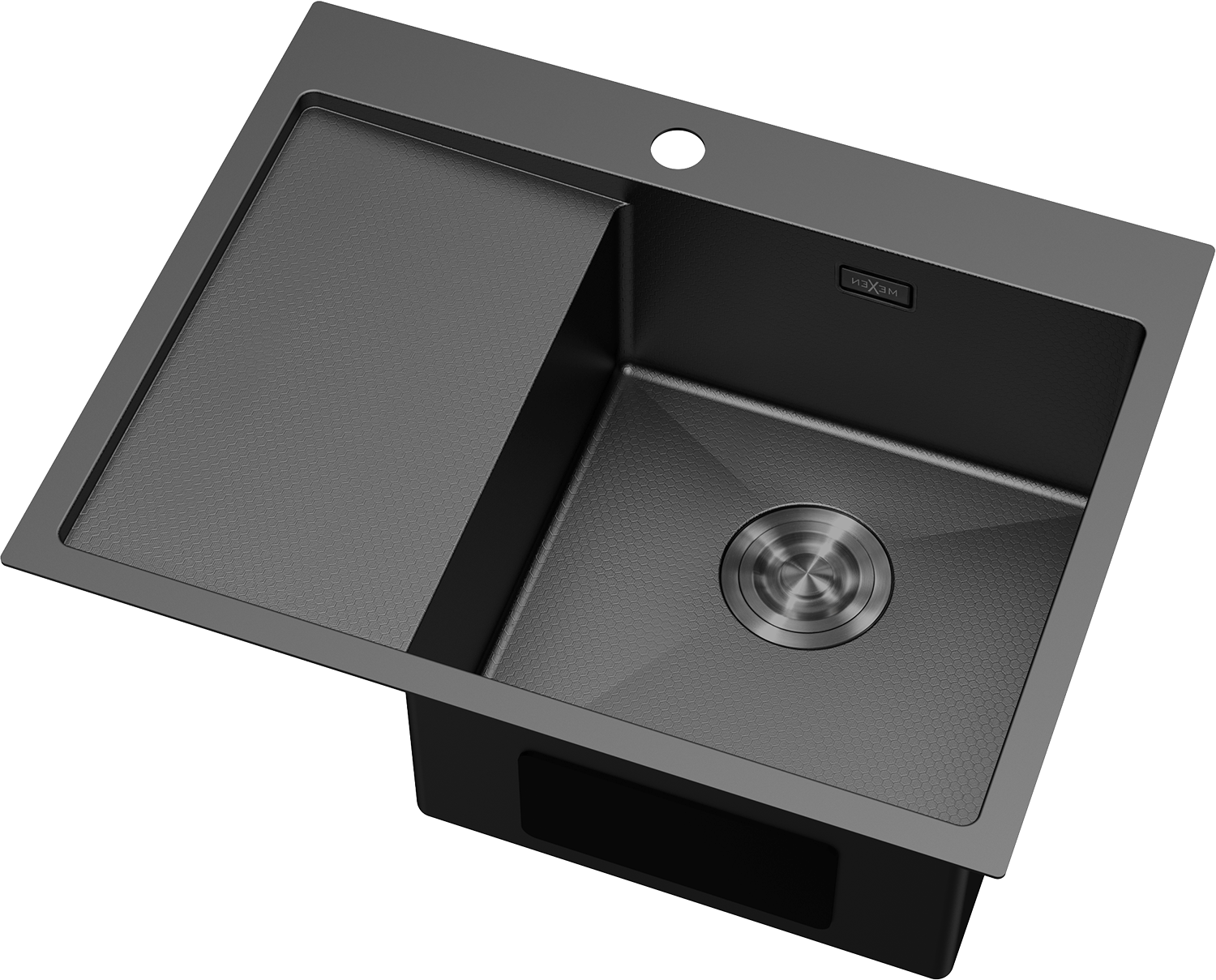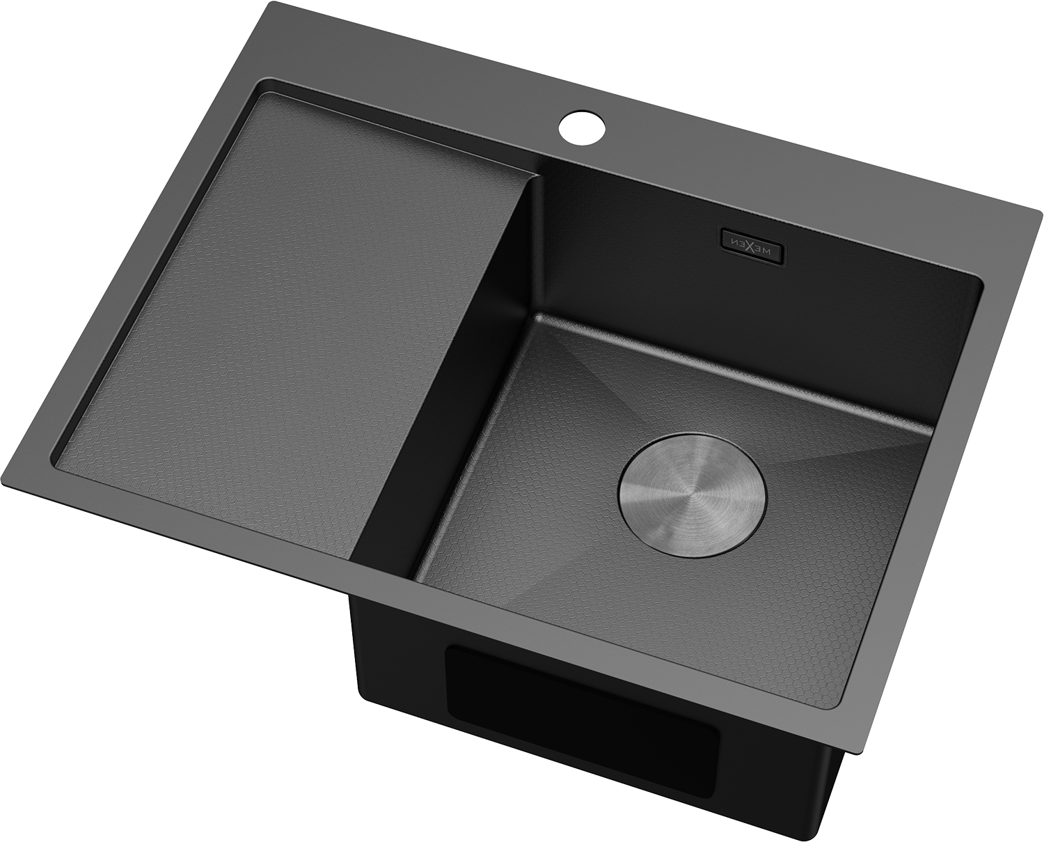 • Mexen Exar Évier en acier inoxydable 1 bac avec égouttoir, côté droit 620 x 480 mm, noir HC - 6432621005P-70HC