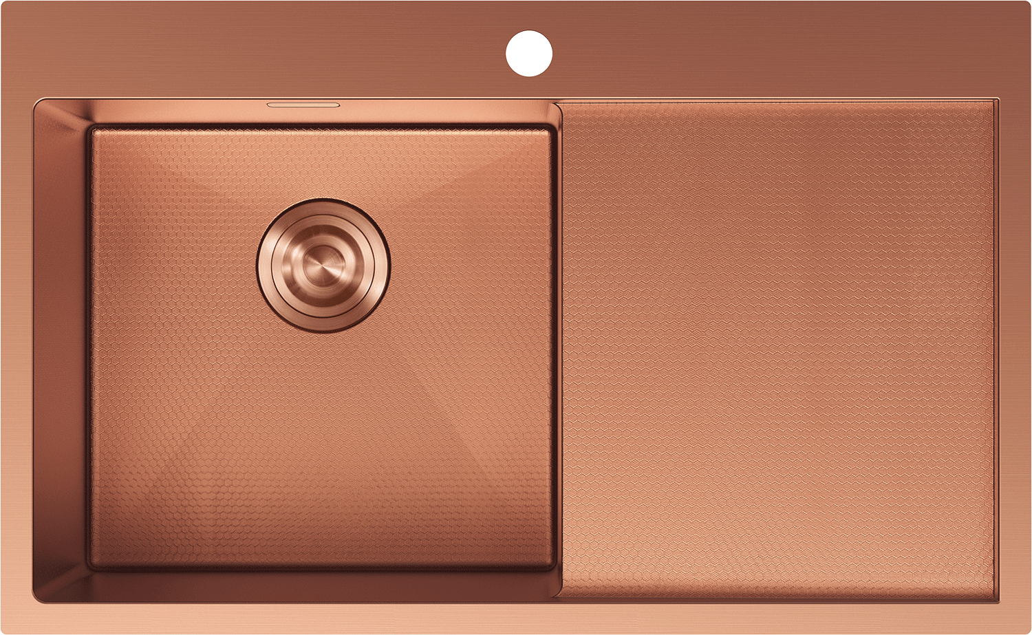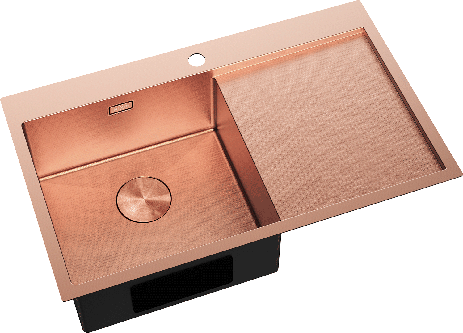 Mexen Exar évier en acier inoxydable 1 cuve avec égouttoir à gauche 780 x 480 mm, cuivre HC - 6433781010L-65HC
