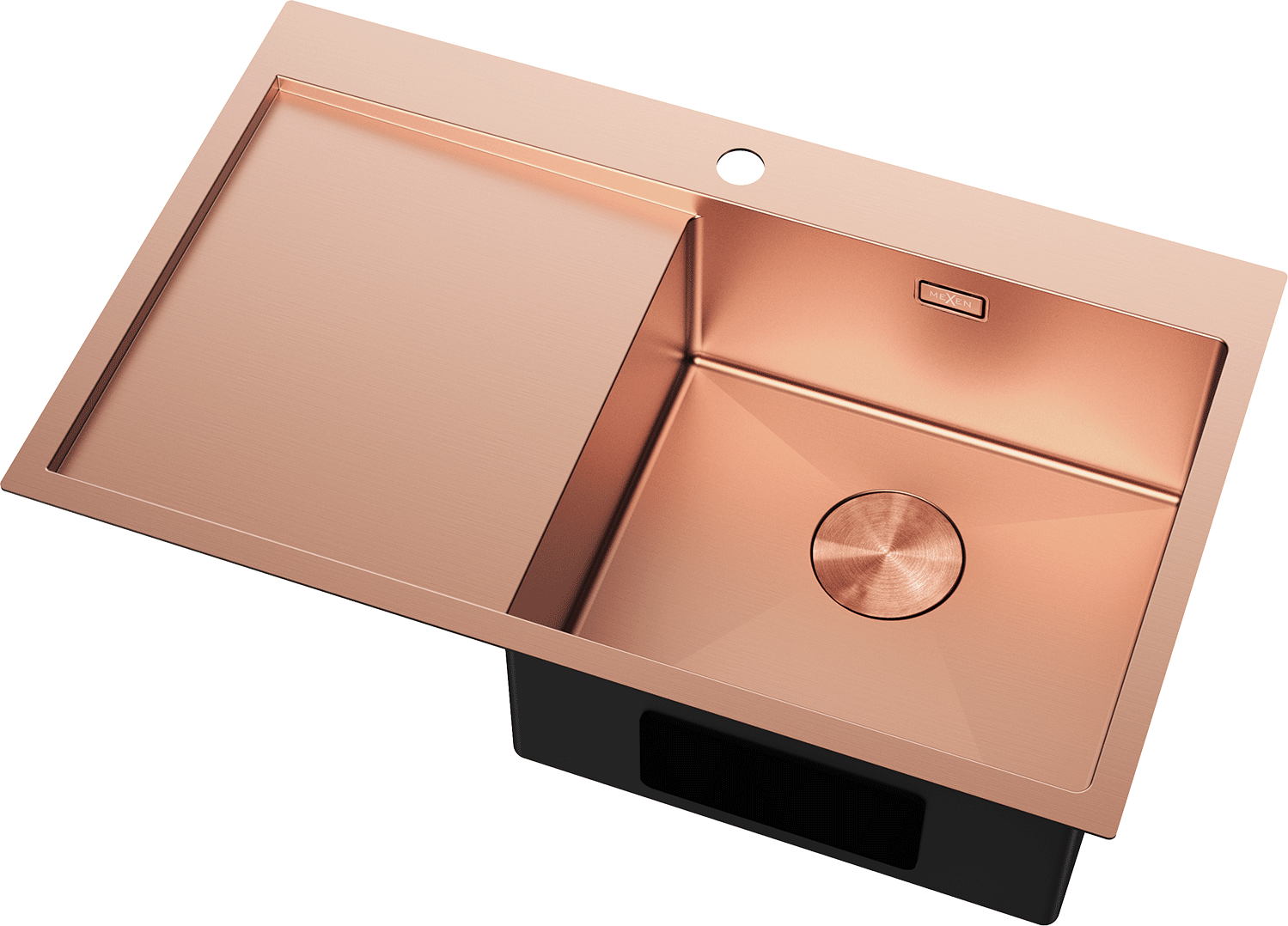 Mexen Exar évier en acier inoxydable 1 bac avec égouttoir, droit 780 x 480 mm, cuivre - 6434781010P-65