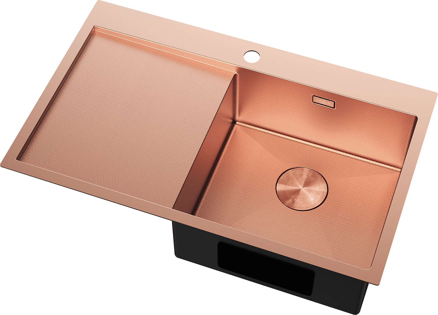 Mexen Exar évier en acier inoxydable 1 bac avec égouttoir à droite 780 x 480 mm, cuivre HC - 6434781010P-65HC