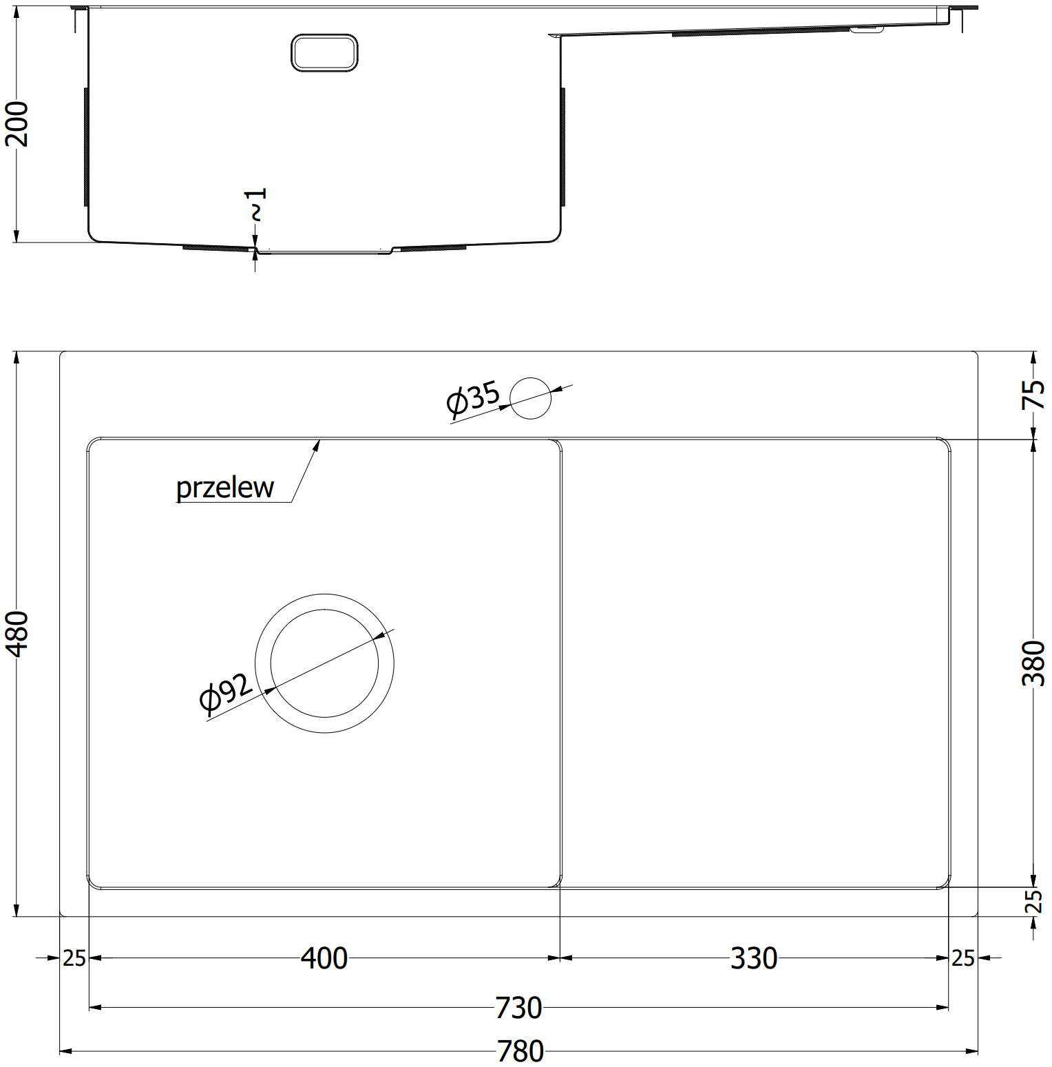 La surface de l'évier est très bien durcie, elle se distingue par une résistance exceptionnelle aux dommages mécaniques et aux rayures. Le matériau durable de fabrication permet de profiter de l'apparence de l'évier pendant de nombreuses années d'utilisation.