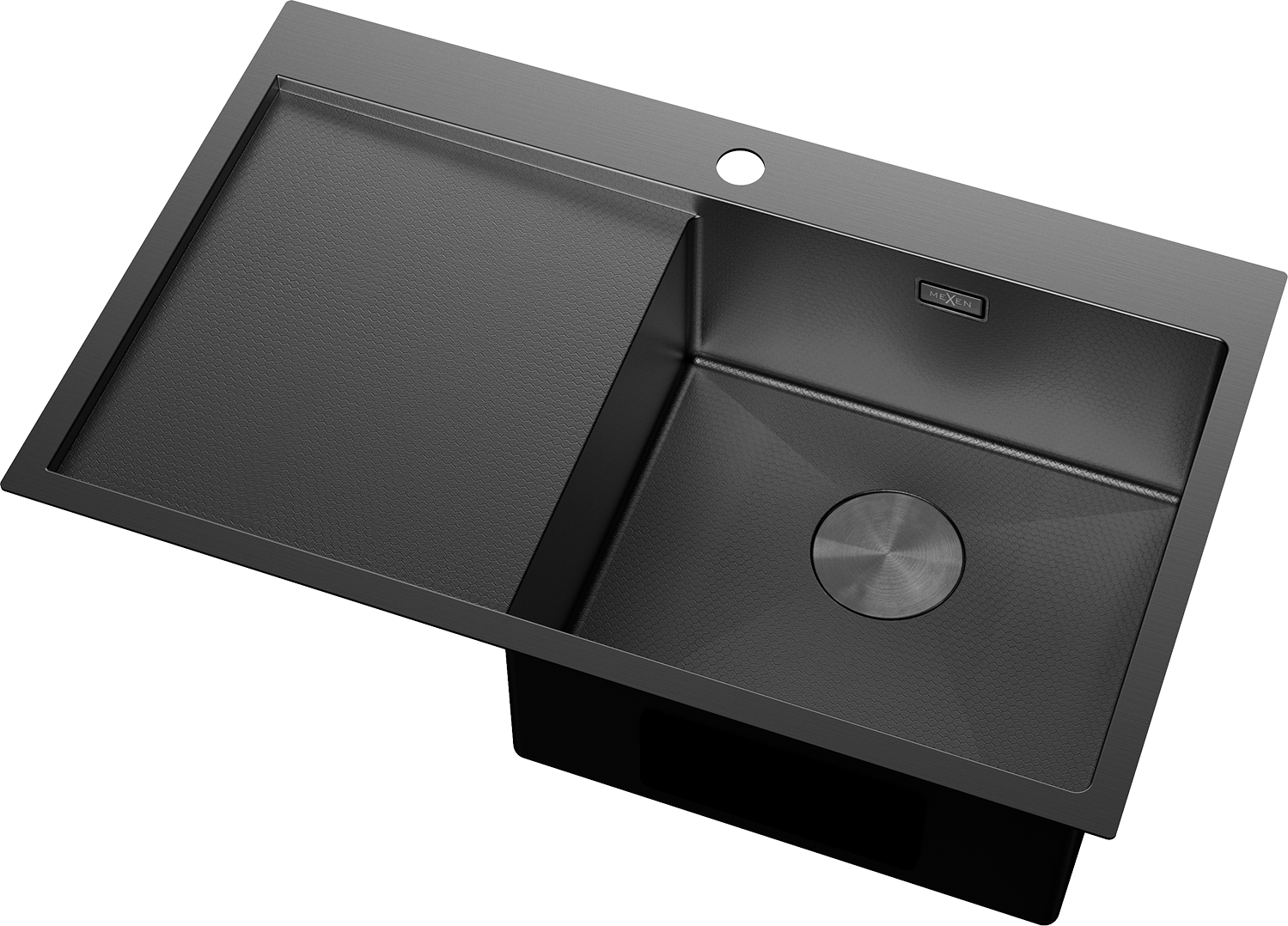 Mexen Exar évier en acier avec 1 bac et égouttoir, droit 780 x 480 mm, noir HC - 6434781010P-70HC