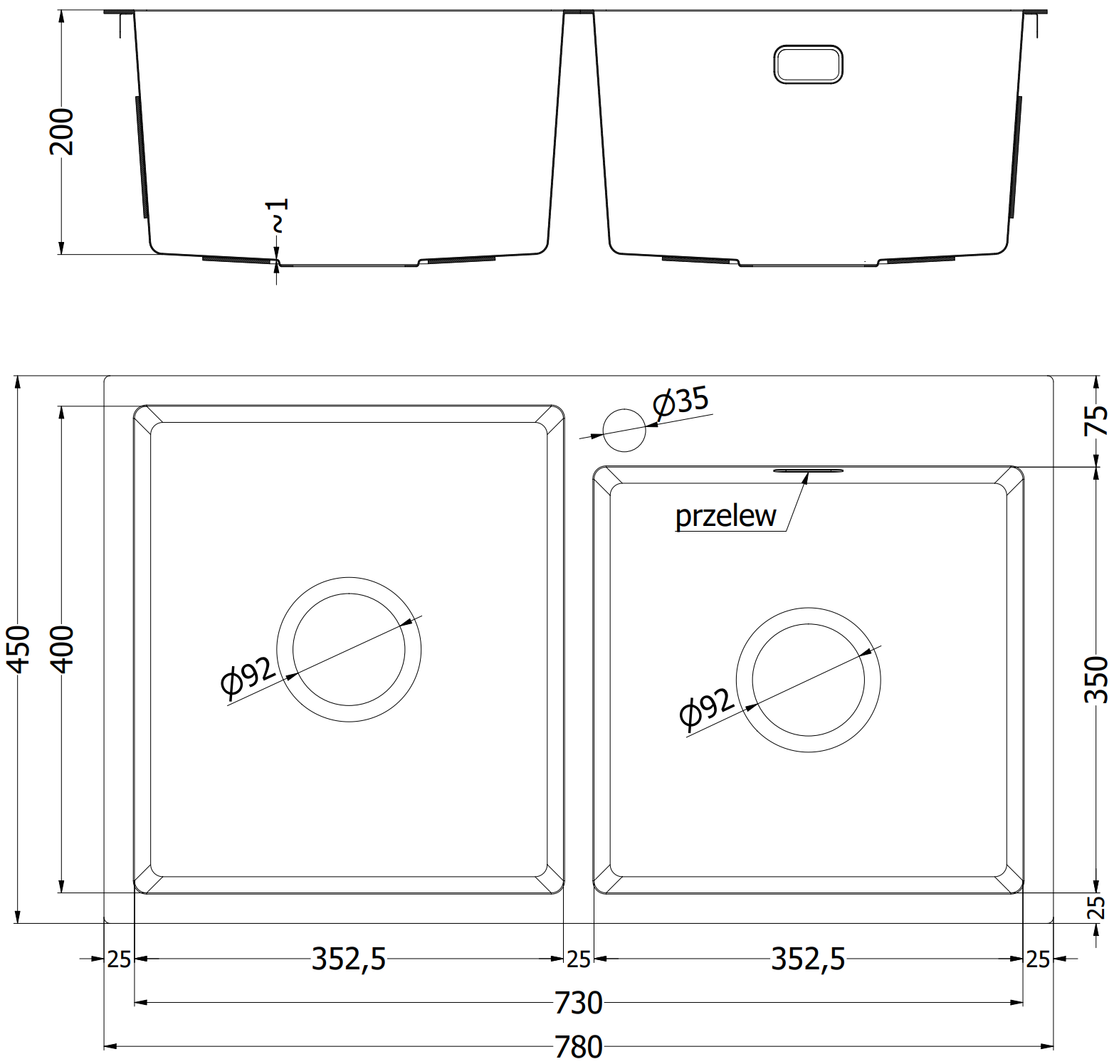 La surface de l'évier est très bien durcie, elle se distingue par une résistance exceptionnelle aux dommages mécaniques et aux rayures. Le matériau durable de fabrication permet de profiter de l'apparence de l'évier pendant de nombreuses années d'utilisation.