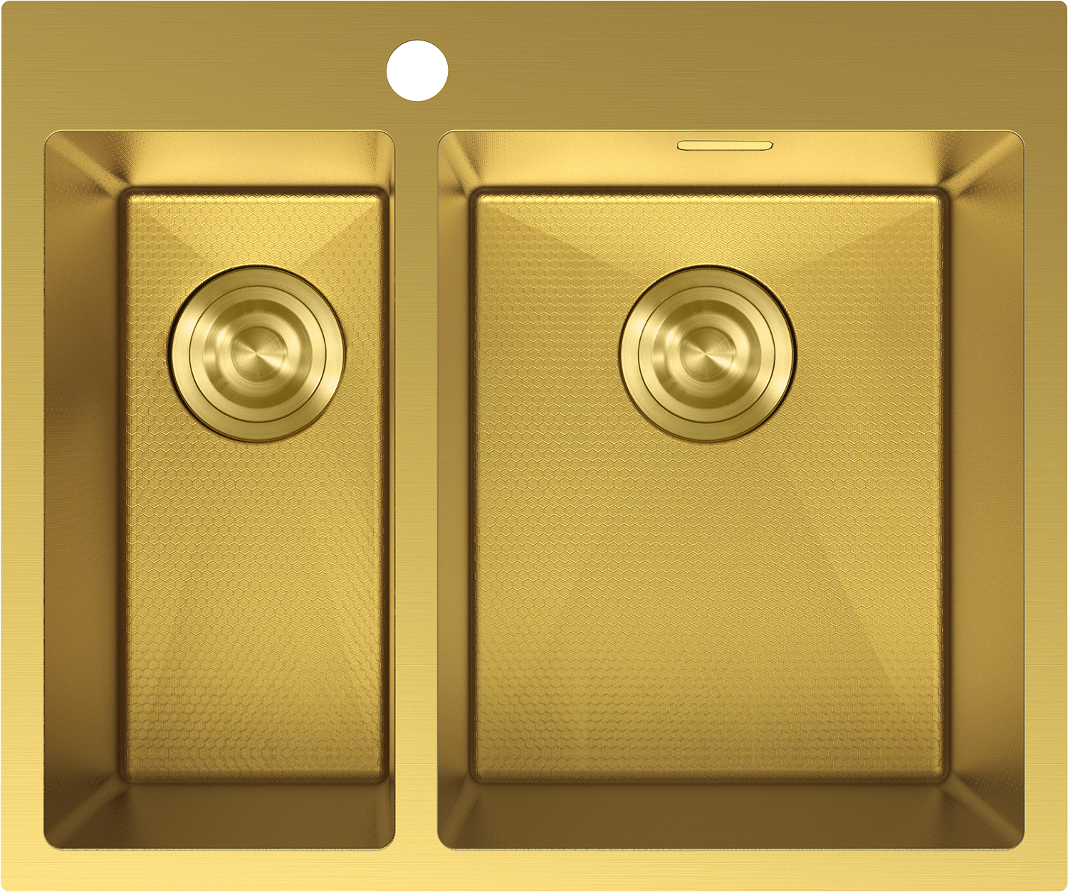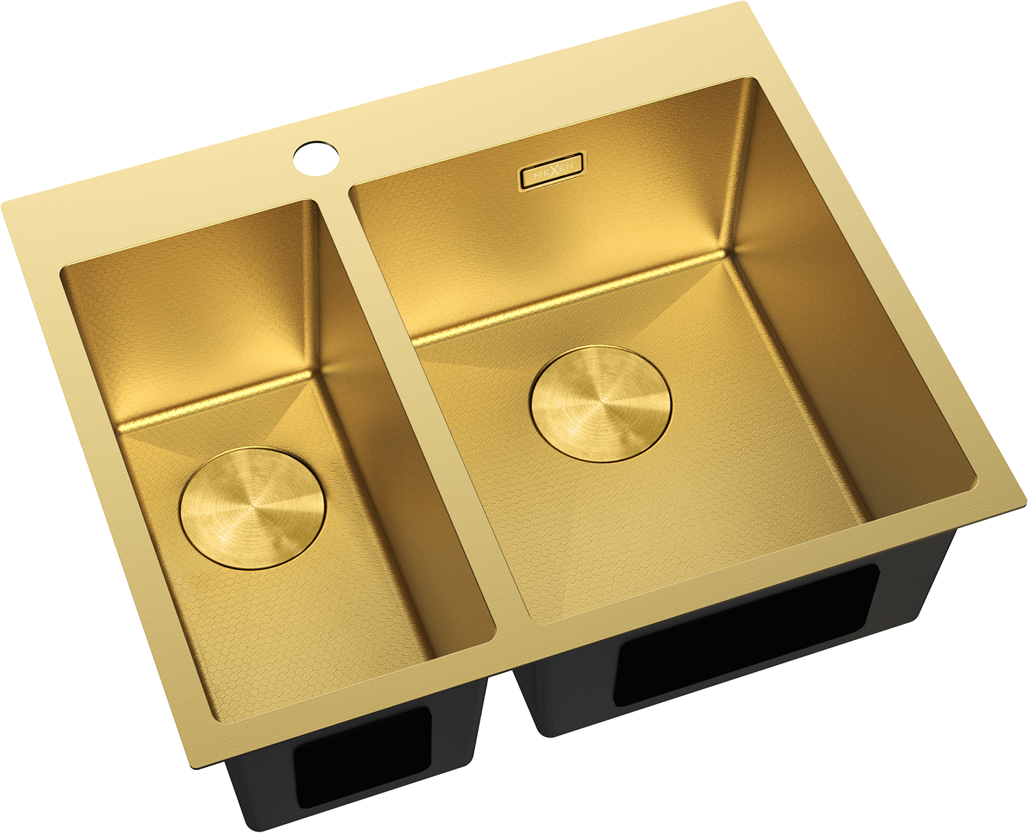 Mexen Flexo évier en acier inoxydable 1,5 bac 610 x 510 mm, doré HC - 6446611500-55HC