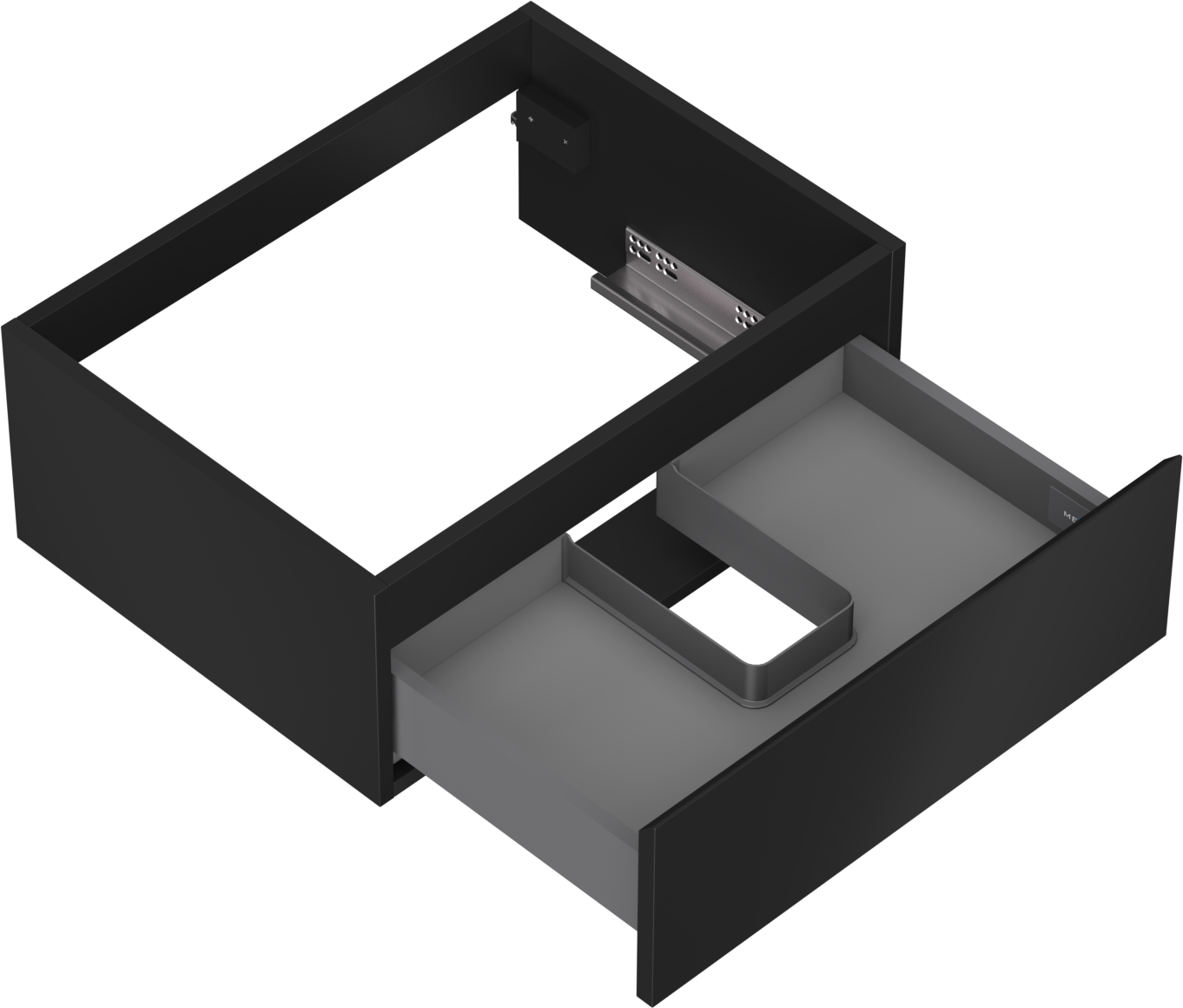 La découpe dans le tiroir est conçue de manière à accueillir le siphon, qui est nécessaire dans les installations de lavabo. Ainsi, le meuble peut être installé de manière pleinement fonctionnelle, sans devoir renoncer à l'espace du tiroir au profit de l'installation.