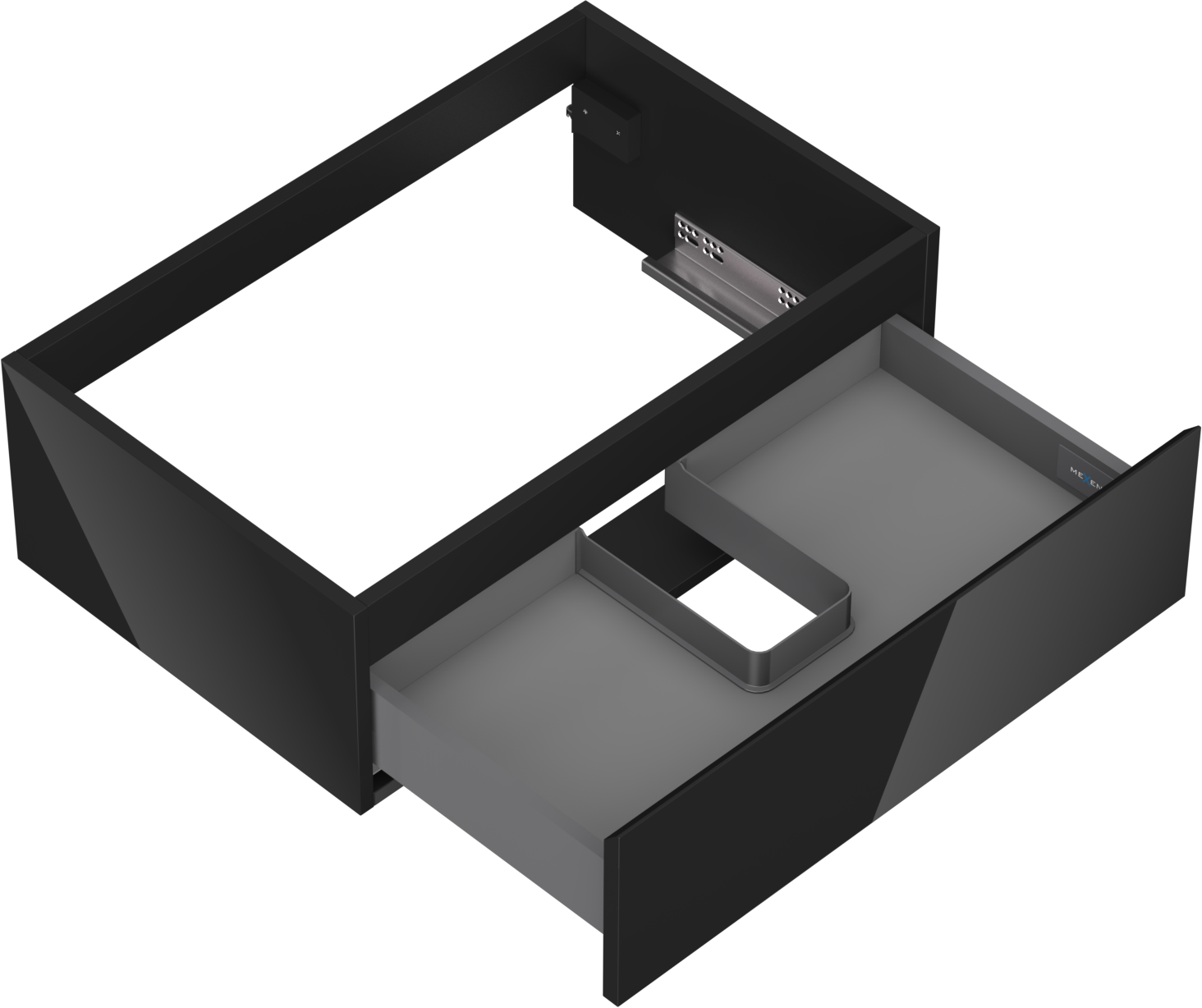 La découpe dans le tiroir est conçue de manière à accueillir le siphon, qui est nécessaire dans les installations de lavabo. Ainsi, le meuble peut être installé de manière pleinement fonctionnelle, sans devoir renoncer à l'espace du tiroir au profit de l'installation.