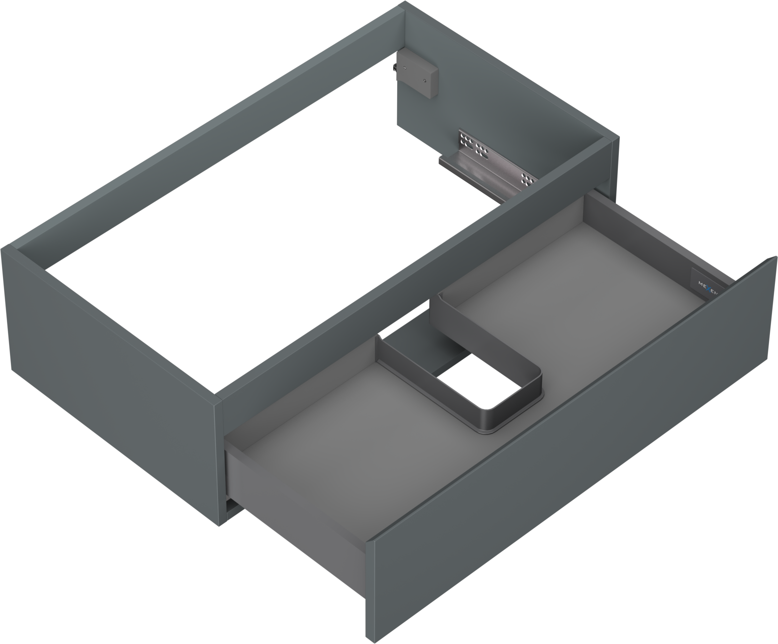 La découpe dans le tiroir est conçue de manière à accueillir le siphon, qui est nécessaire dans les installations de lavabo. Ainsi, le meuble peut être installé de manière pleinement fonctionnelle, sans devoir renoncer à l'espace du tiroir au profit de l'installation.