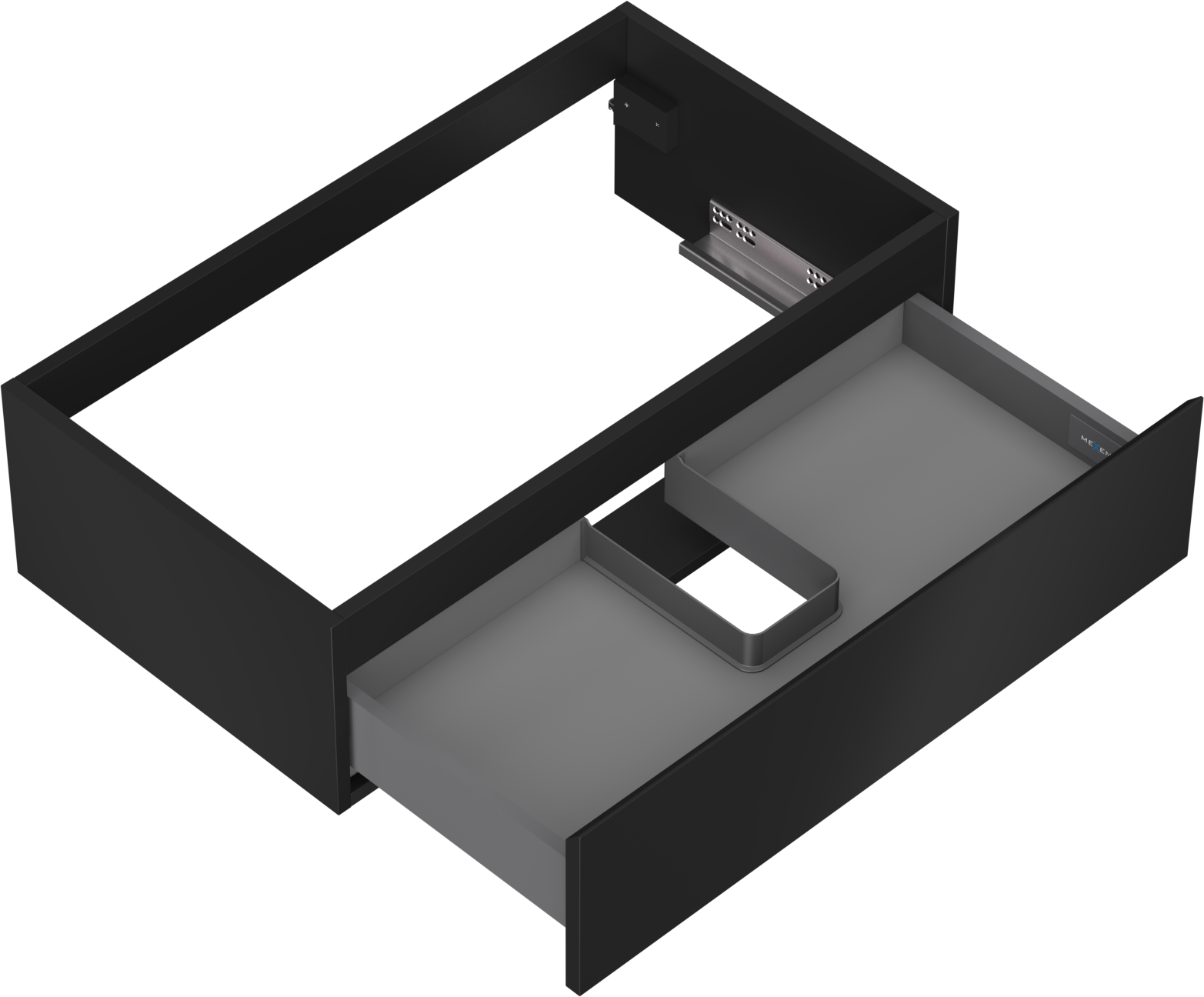 La découpe dans le tiroir est conçue de manière à accueillir le siphon, qui est nécessaire dans les installations de lavabo. Ainsi, le meuble peut être installé de manière pleinement fonctionnelle, sans devoir renoncer à l'espace du tiroir au profit de l'installation.