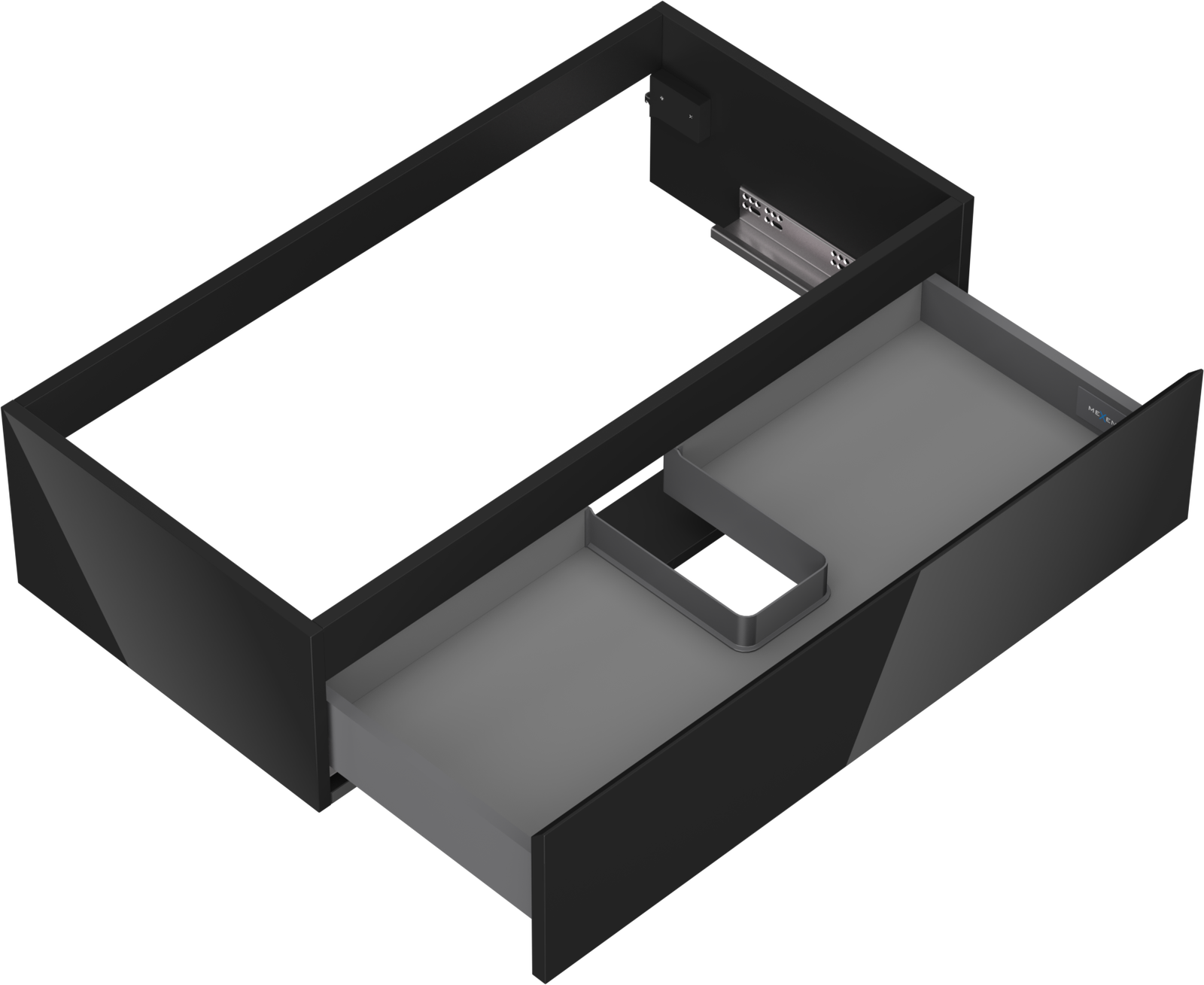 La découpe dans le tiroir est conçue de manière à accueillir le siphon, qui est nécessaire dans les installations de lavabo. Ainsi, le meuble peut être installé de manière pleinement fonctionnelle, sans devoir renoncer à l'espace du tiroir au profit de l'installation.