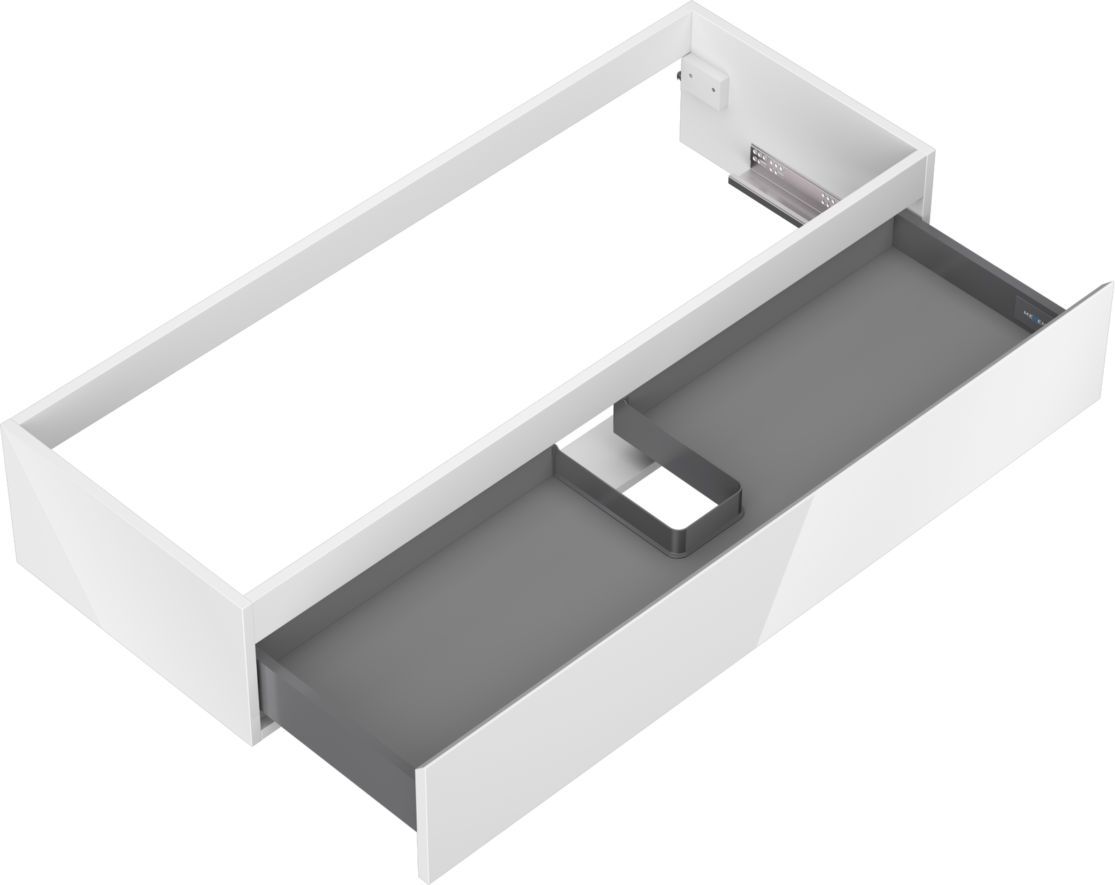 La découpe dans le tiroir est conçue de manière à accueillir le siphon, qui est nécessaire dans les installations de lavabo. Ainsi, le meuble peut être installé de manière pleinement fonctionnelle, sans devoir renoncer à l'espace du tiroir au profit de l'installation.