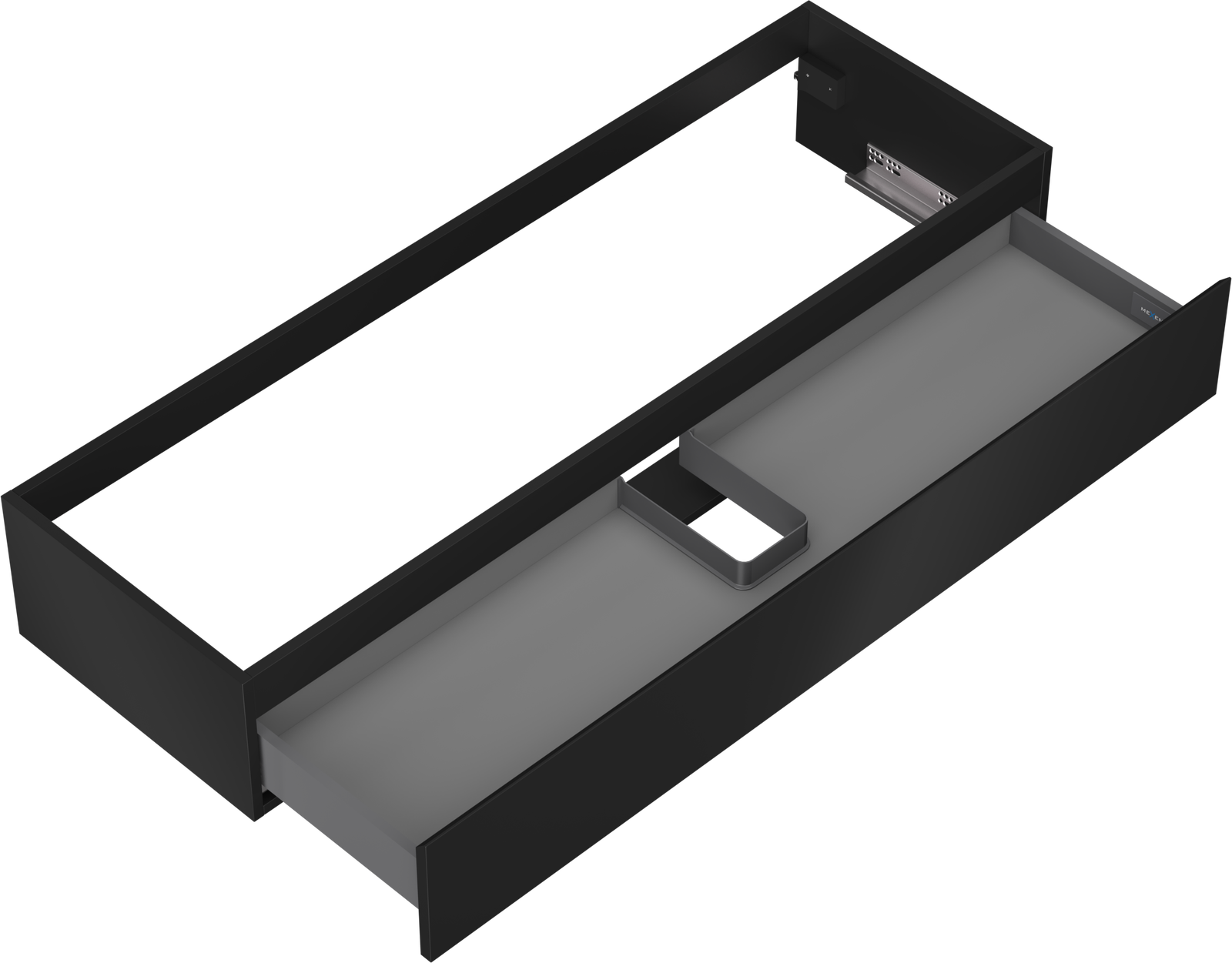 La découpe dans le tiroir est conçue de manière à accueillir le siphon, qui est nécessaire dans les installations de lavabo. Ainsi, le meuble peut être installé de manière pleinement fonctionnelle, sans devoir renoncer à l'espace du tiroir au profit de l'installation.