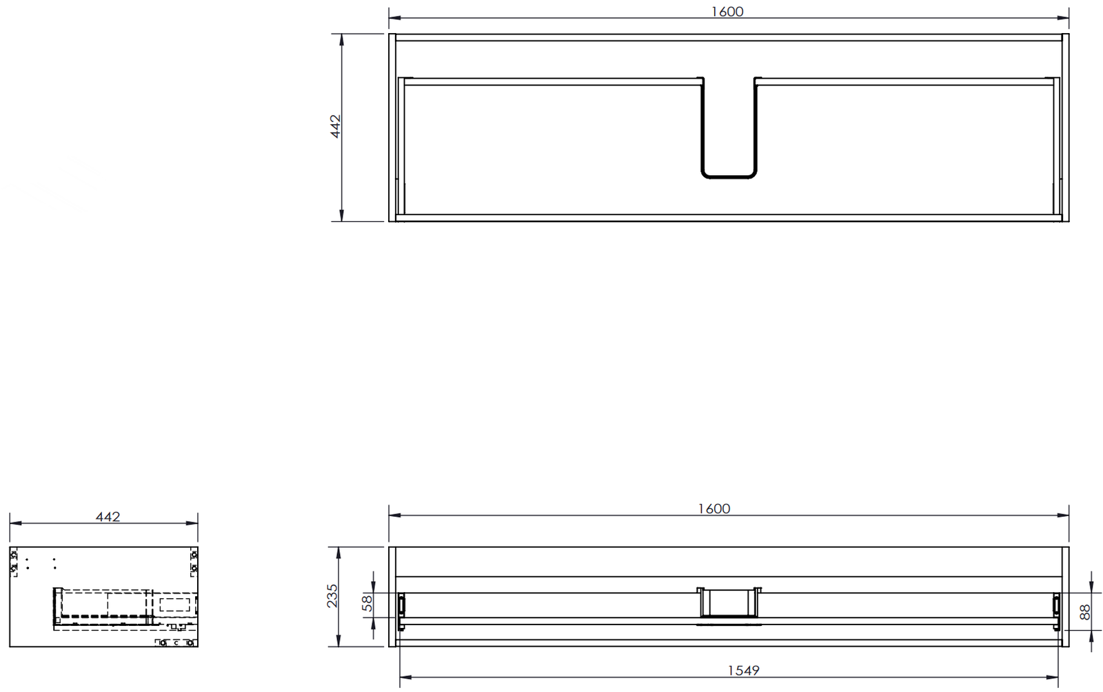 La découpe dans le tiroir est conçue de manière à accueillir le siphon, qui est nécessaire dans les installations de lavabo. Ainsi, le meuble peut être installé de manière pleinement fonctionnelle, sans devoir renoncer à l'espace du tiroir au profit de l'installation.