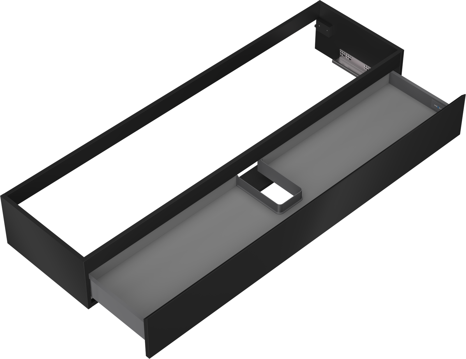 La découpe dans le tiroir est conçue de manière à accueillir le siphon, qui est nécessaire dans les installations de lavabo. Ainsi, le meuble peut être installé de manière pleinement fonctionnelle, sans devoir renoncer à l'espace du tiroir au profit de l'installation.