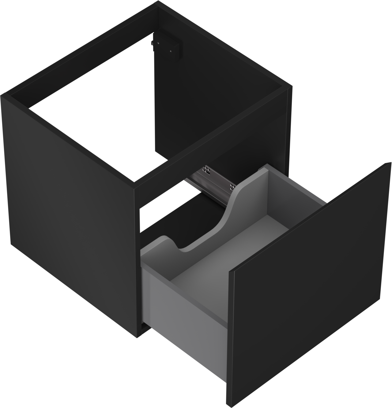 La découpe dans le tiroir est conçue de manière à accueillir le siphon, qui est nécessaire dans les installations de lavabo. Ainsi, le meuble peut être installé de manière pleinement fonctionnelle, sans devoir renoncer à l'espace du tiroir au profit de l'installation.