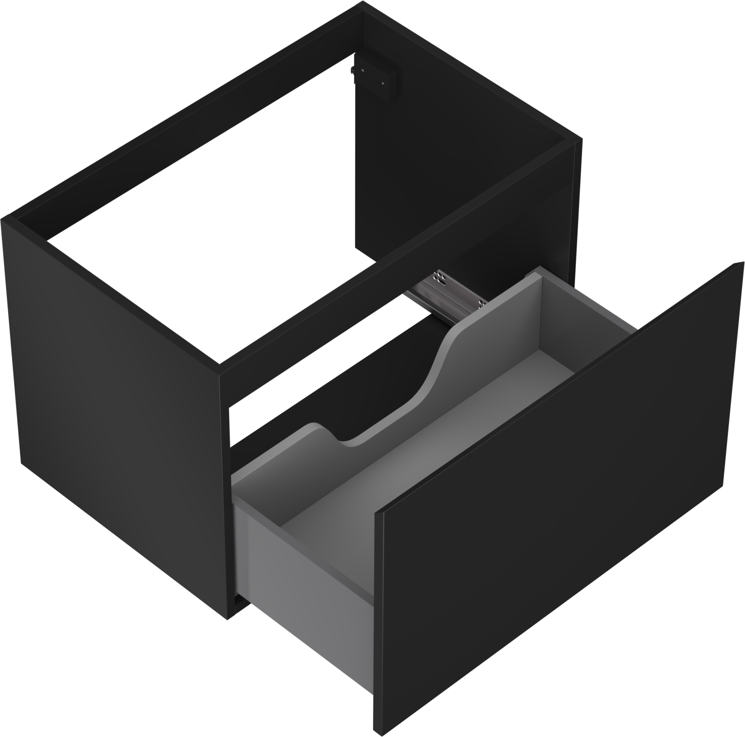 La découpe dans le tiroir est conçue de manière à accueillir le siphon, qui est nécessaire dans les installations de lavabo. Ainsi, le meuble peut être installé de manière pleinement fonctionnelle, sans devoir renoncer à l'espace du tiroir au profit de l'installation.