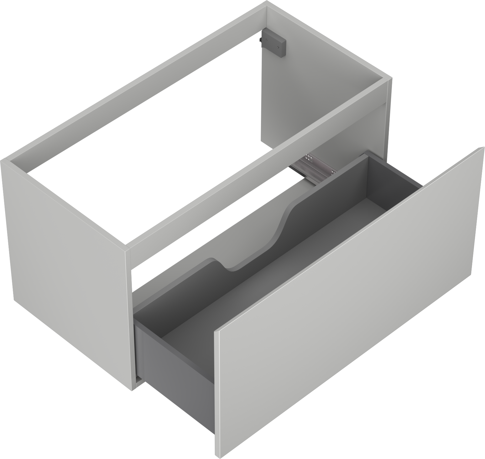 La découpe dans le tiroir est conçue de manière à accueillir le siphon, qui est nécessaire dans les installations de lavabo. Ainsi, le meuble peut être installé de manière pleinement fonctionnelle, sans devoir renoncer à l'espace du tiroir au profit de l'installation.