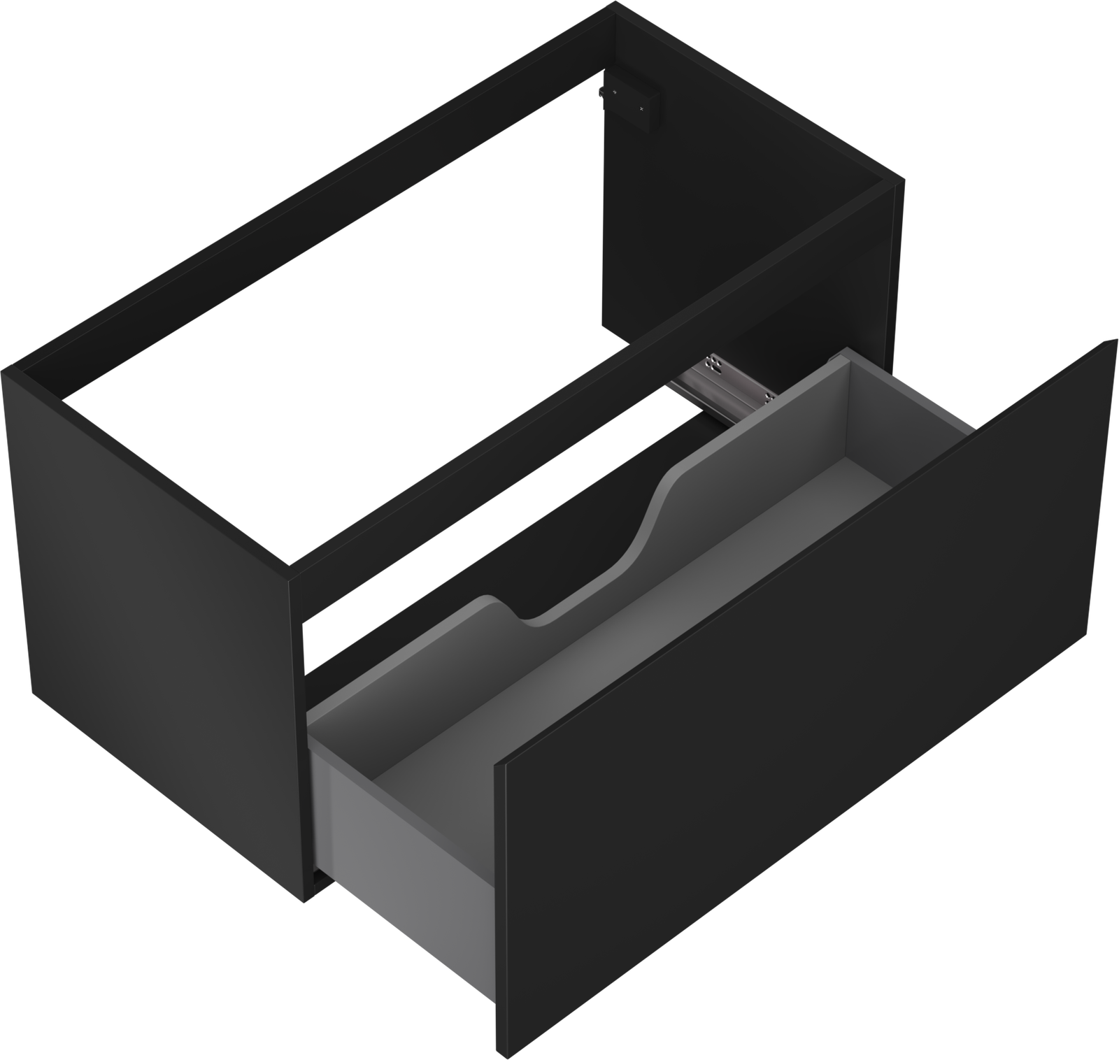 La découpe dans le tiroir est conçue de manière à accueillir le siphon, qui est nécessaire dans les installations de lavabo. Ainsi, le meuble peut être installé de manière pleinement fonctionnelle, sans devoir renoncer à l'espace du tiroir au profit de l'installation.