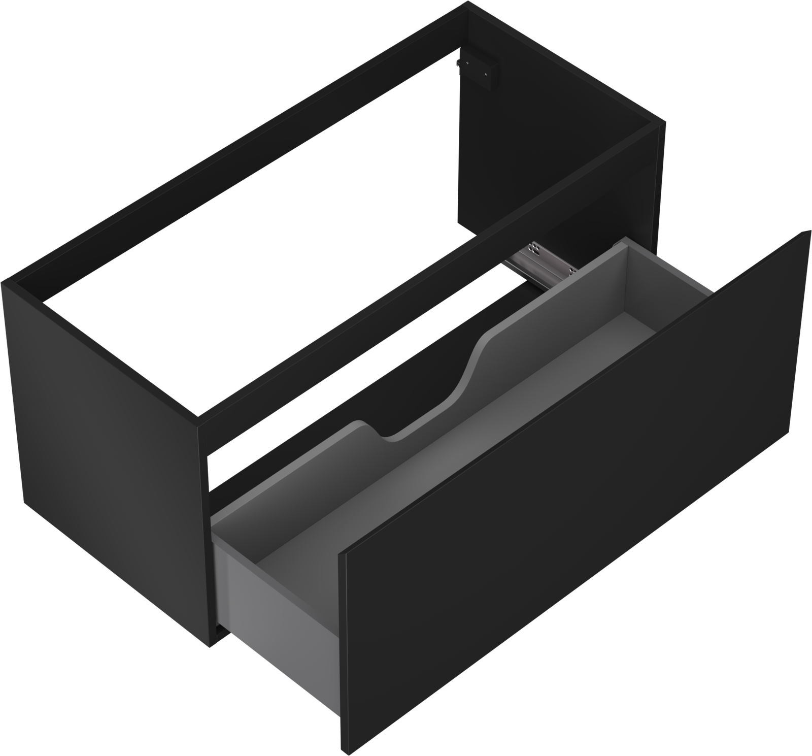 La découpe dans le tiroir est conçue de manière à accueillir le siphon, qui est nécessaire dans les installations de lavabo. Ainsi, le meuble peut être installé de manière pleinement fonctionnelle, sans devoir renoncer à l'espace du tiroir au profit de l'installation.