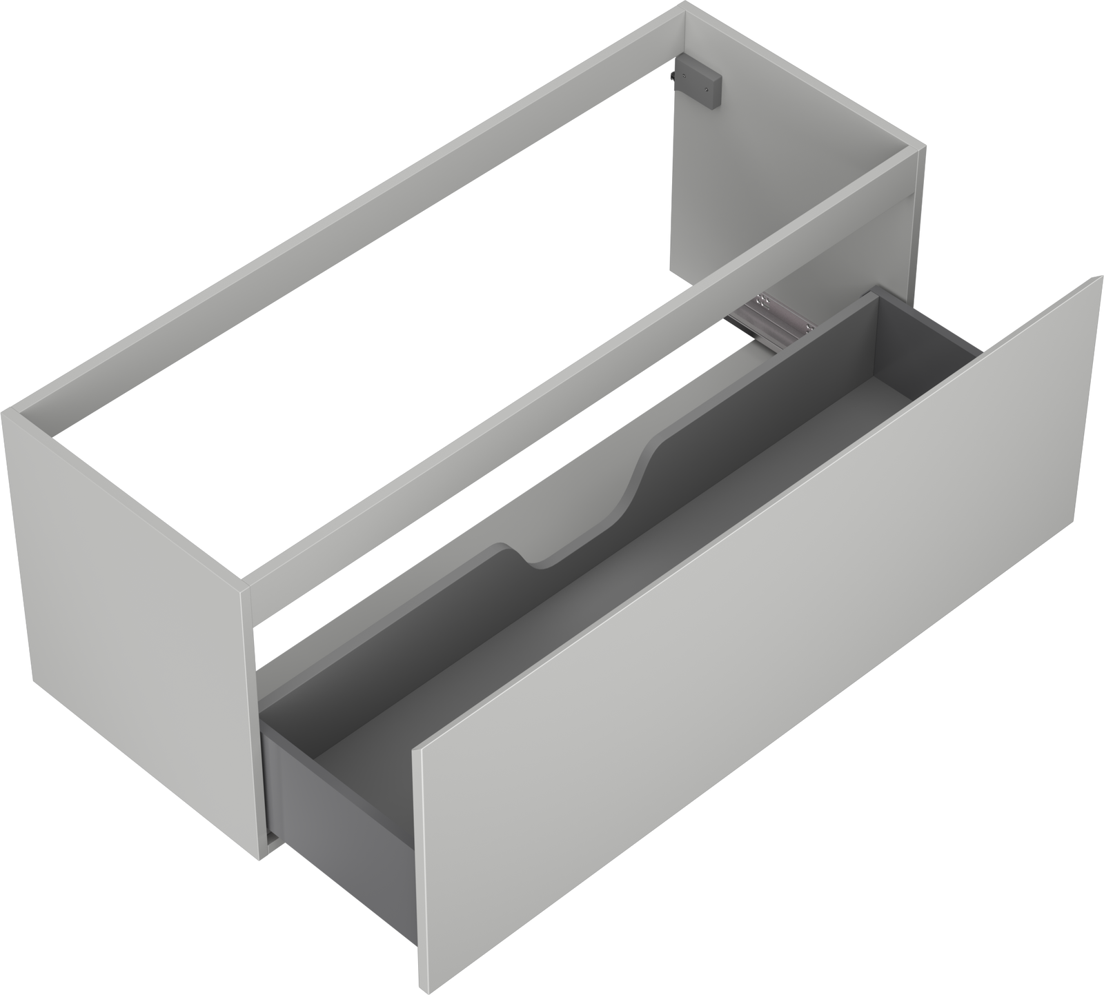 La découpe dans le tiroir est conçue de manière à accueillir le siphon, qui est nécessaire dans les installations de lavabo. Ainsi, le meuble peut être installé de manière pleinement fonctionnelle, sans devoir renoncer à l'espace du tiroir au profit de l'installation.