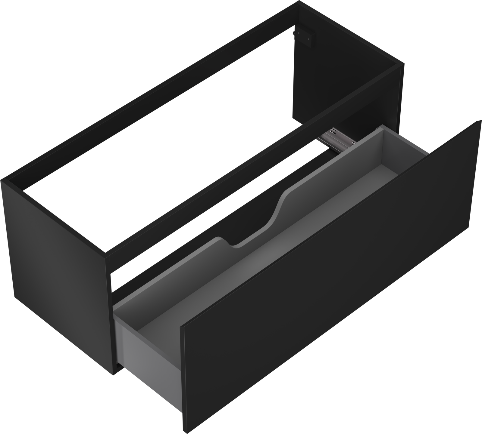 La découpe dans le tiroir est conçue de manière à accueillir le siphon, qui est nécessaire dans les installations de lavabo. Ainsi, le meuble peut être installé de manière pleinement fonctionnelle, sans devoir renoncer à l'espace du tiroir au profit de l'installation.