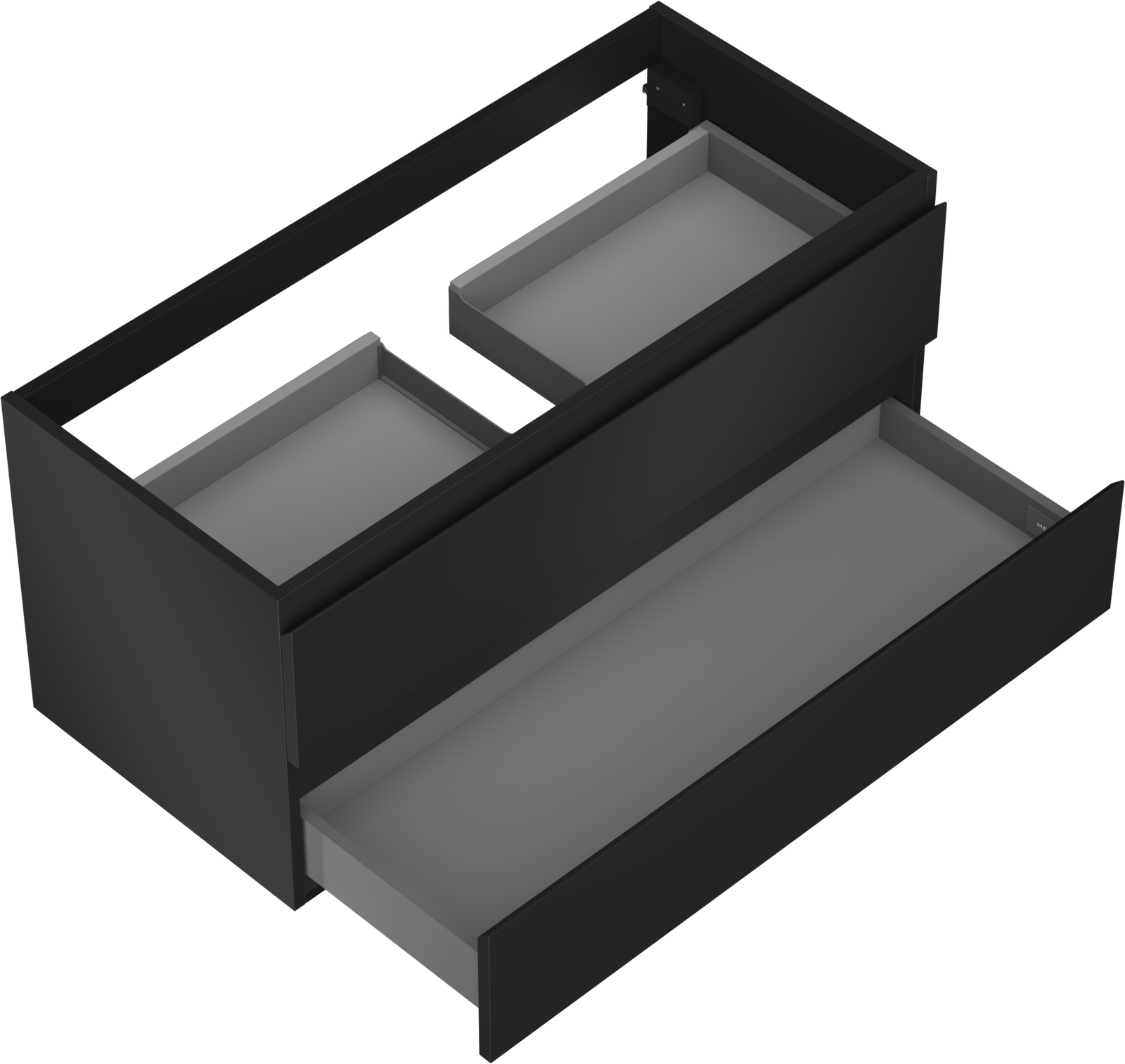 La découpe dans le tiroir est conçue de manière à accueillir le siphon, qui est nécessaire dans les installations de lavabo. Ainsi, le meuble peut être installé de manière pleinement fonctionnelle, sans devoir renoncer à l'espace du tiroir au profit de l'installation.