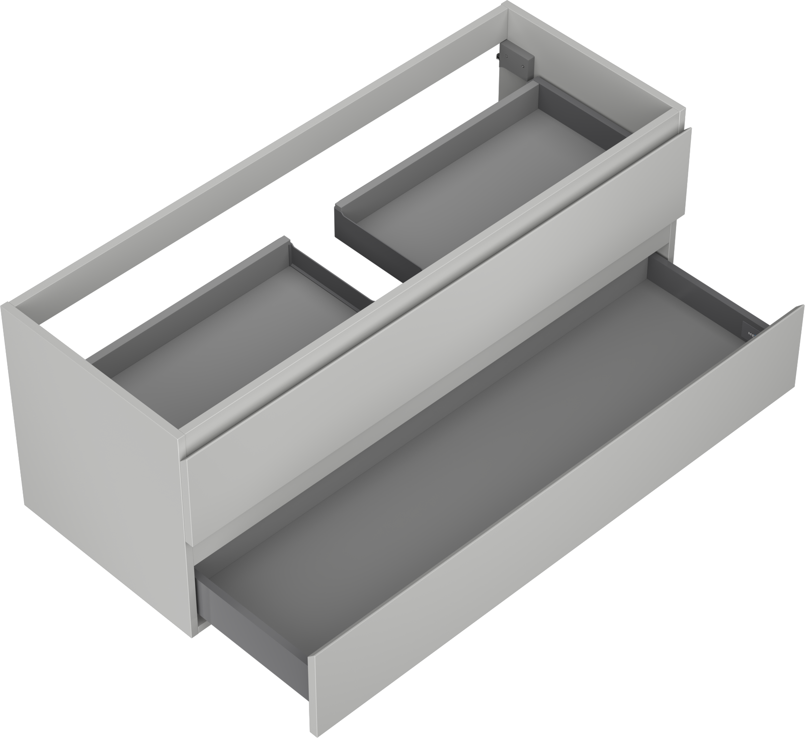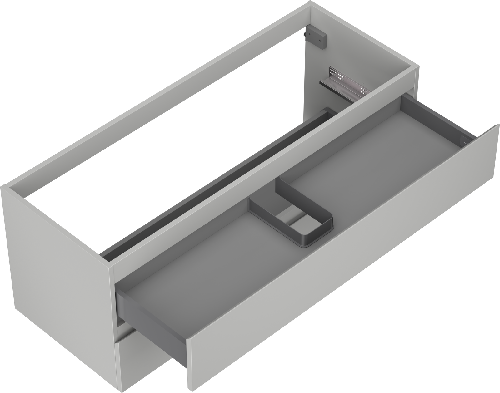 La découpe dans le tiroir est conçue de manière à accueillir le siphon, qui est nécessaire dans les installations de lavabo. Ainsi, le meuble peut être installé de manière pleinement fonctionnelle, sans devoir renoncer à l'espace du tiroir au profit de l'installation.