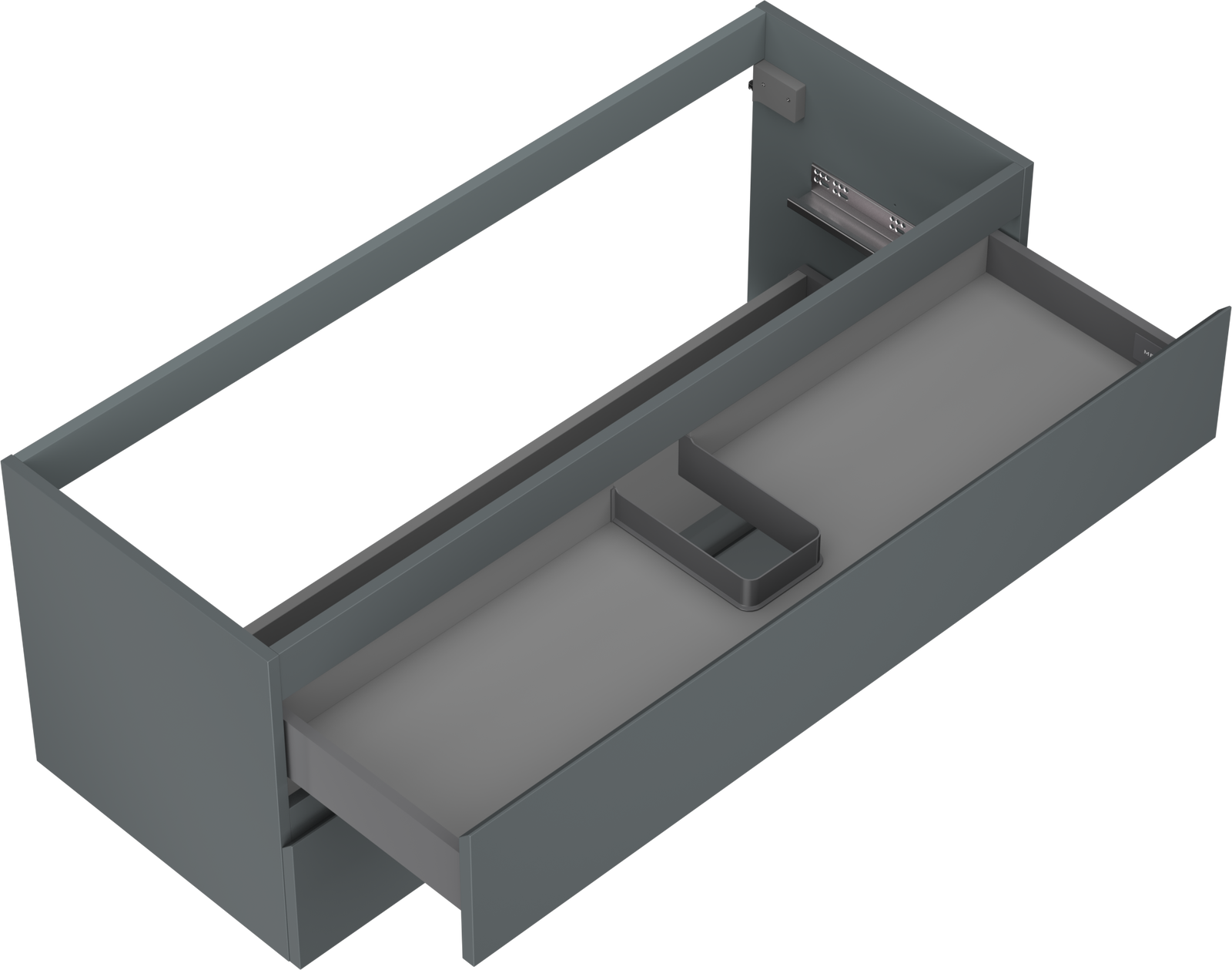 La découpe dans le tiroir est conçue de manière à accueillir le siphon, qui est nécessaire dans les installations de lavabo. Ainsi, le meuble peut être installé de manière pleinement fonctionnelle, sans devoir renoncer à l'espace du tiroir au profit de l'installation.