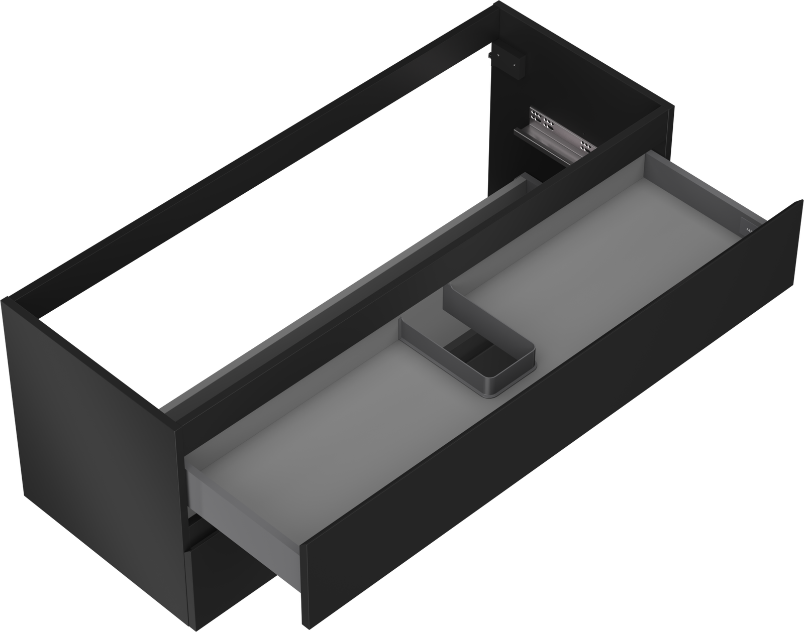 La découpe dans le tiroir est conçue de manière à accueillir le siphon, qui est nécessaire dans les installations de lavabo. Ainsi, le meuble peut être installé de manière pleinement fonctionnelle, sans devoir renoncer à l'espace du tiroir au profit de l'installation.
